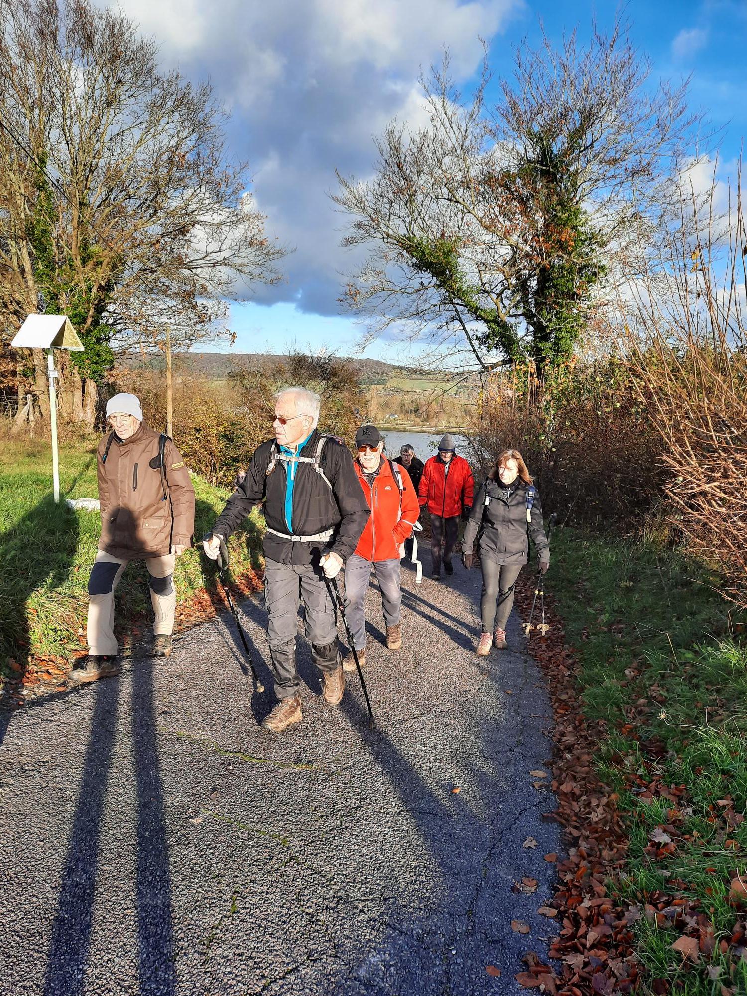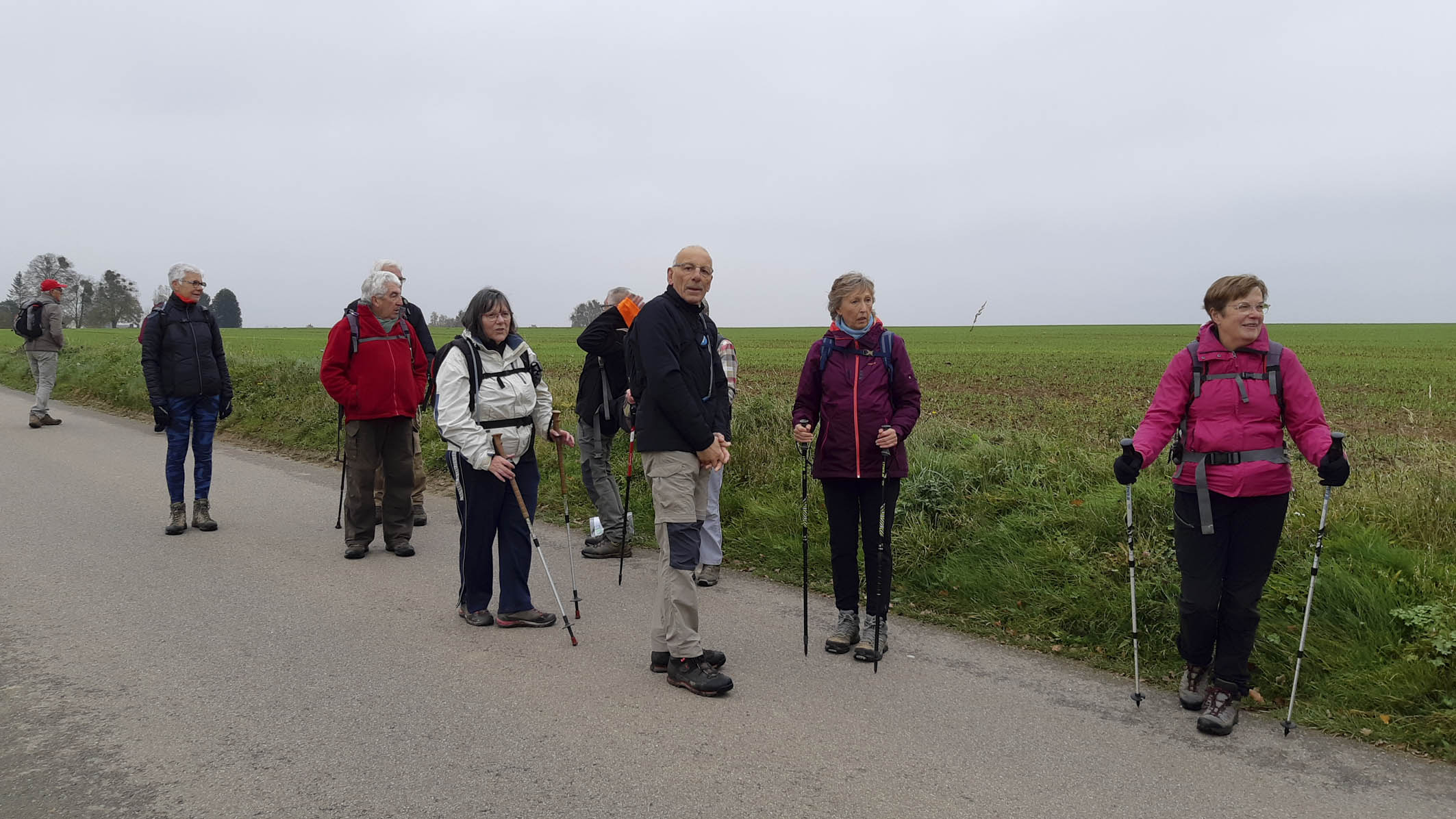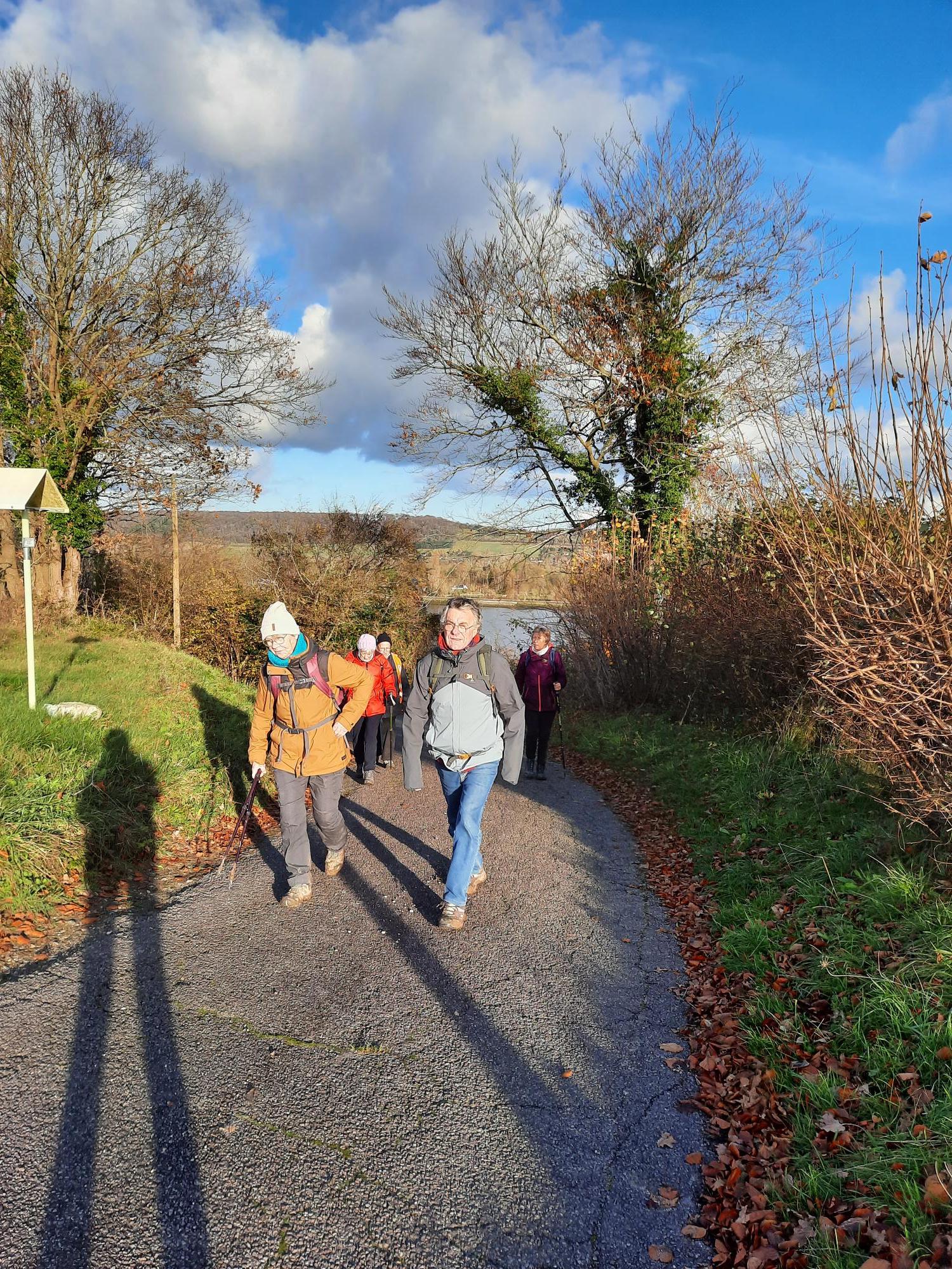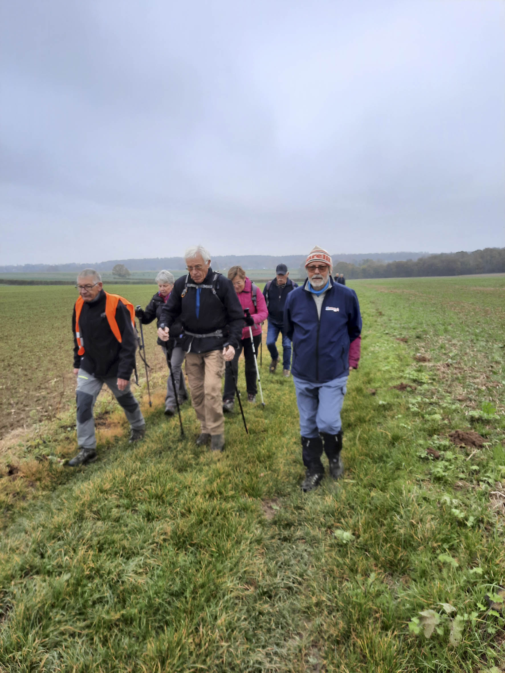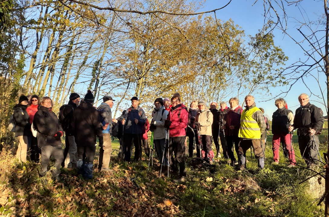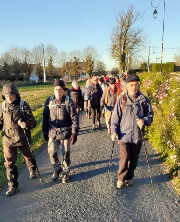 Mardi 16 Novembre, animatrice Martine C. pour un départ à 14 heures depuis le parking de la Salle des fêtes face à l’école de THUIT SIMER. Parcours maxi de 7 km facile, moitié route – moitié chemins. 25 participants – Météo moynne 9 °-