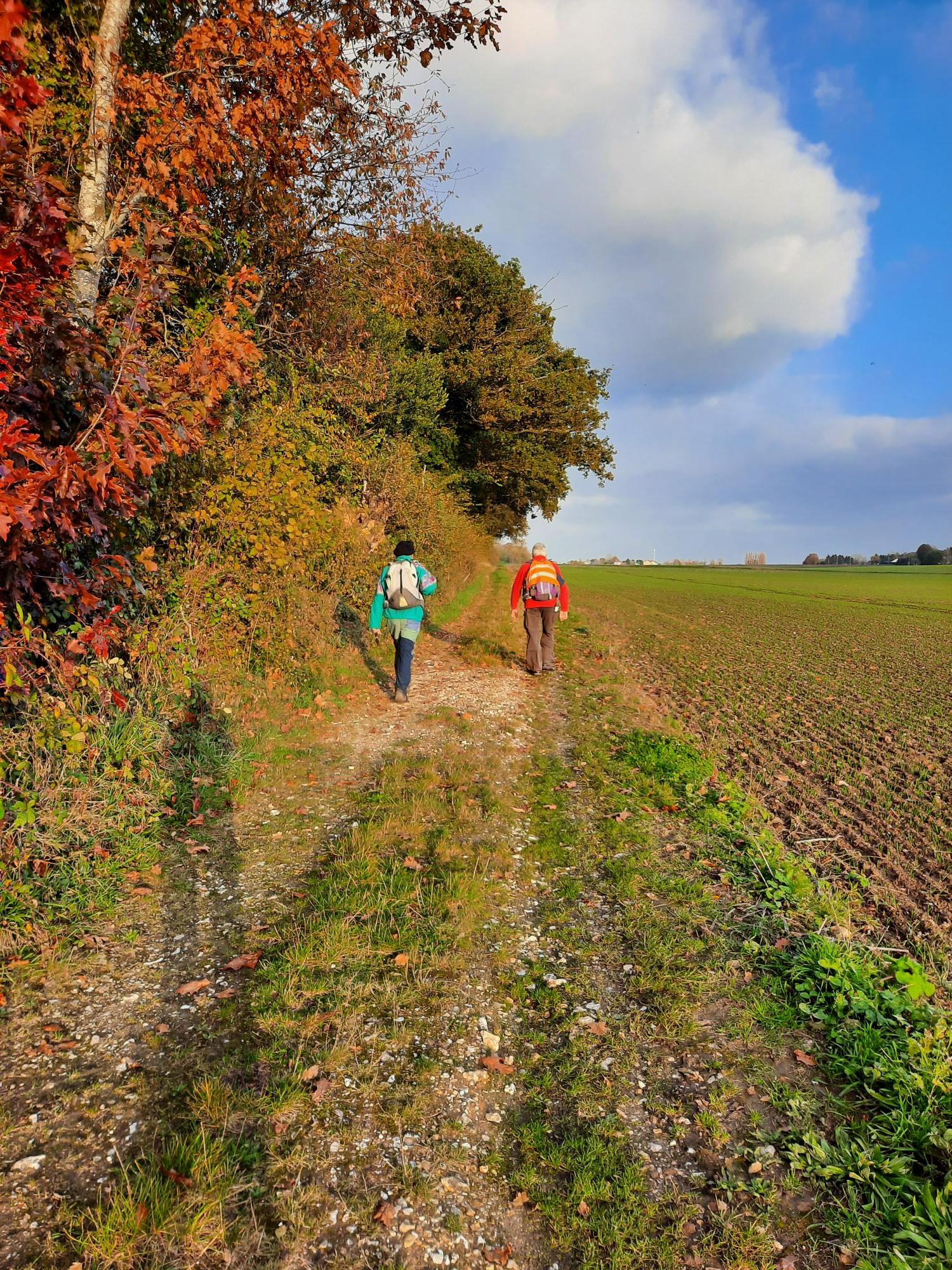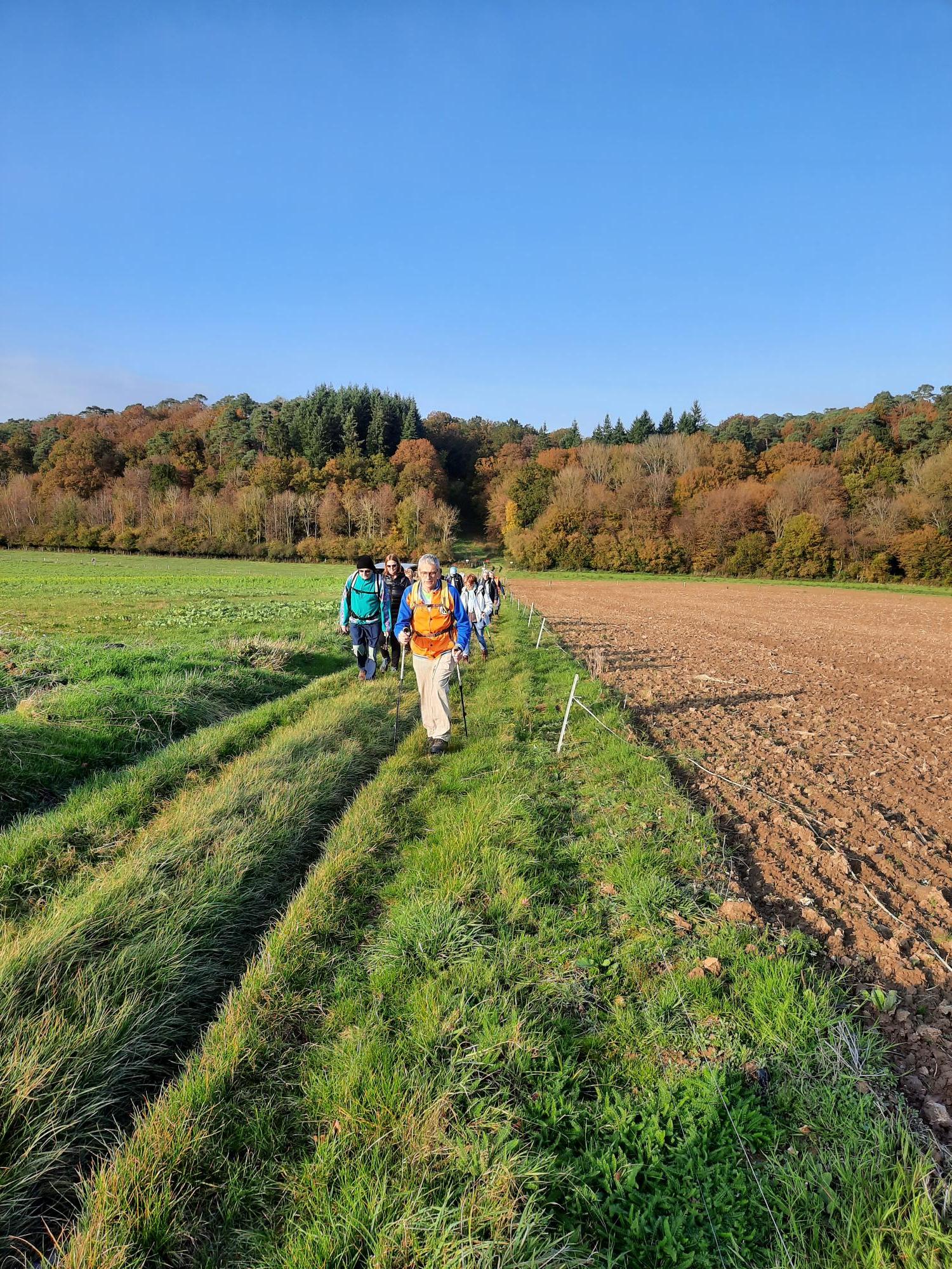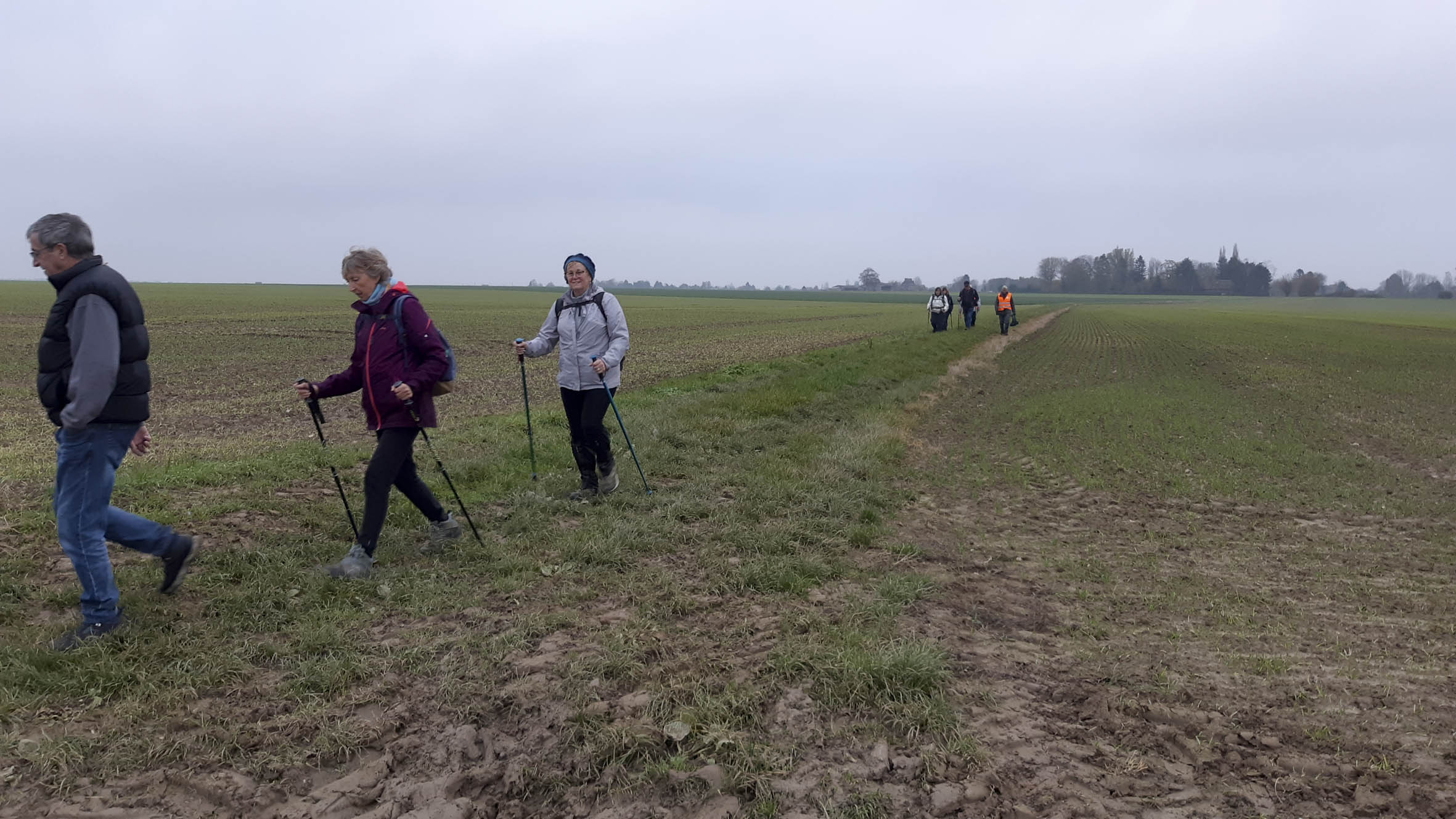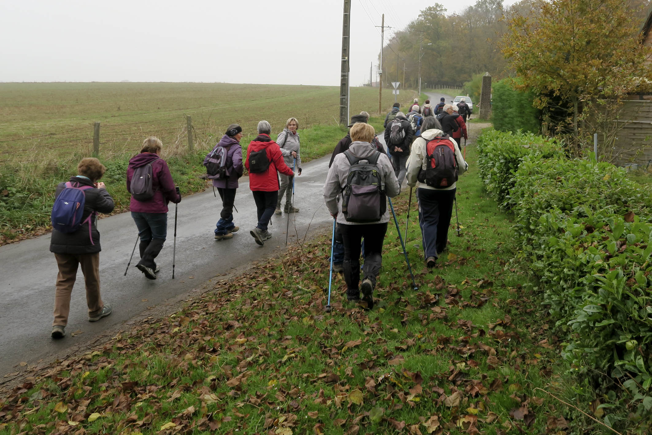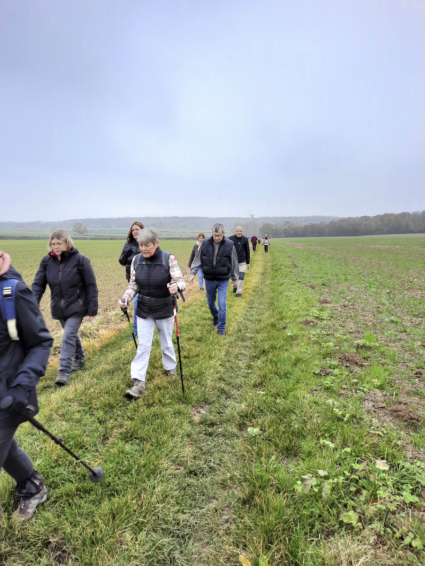 Mardi 16 Novembre, animatrice Martine C. pour un départ à 14 heures depuis le parking de la Salle des fêtes face à l’école de THUIT SIMER. Parcours maxi de 7 km facile, moitié route – moitié chemins. 25 participants – Météo moynne 9 °-