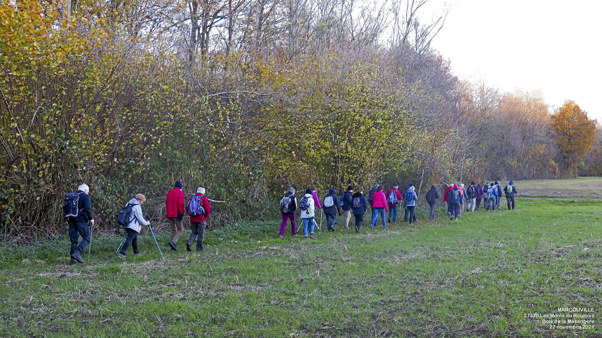 Lundi 29 Novembre, animateur Gérard D. pour un départ à 14 heures, 247 rue de l’École – parking Mairie de Bardouville.-Beau temps – 25 participants