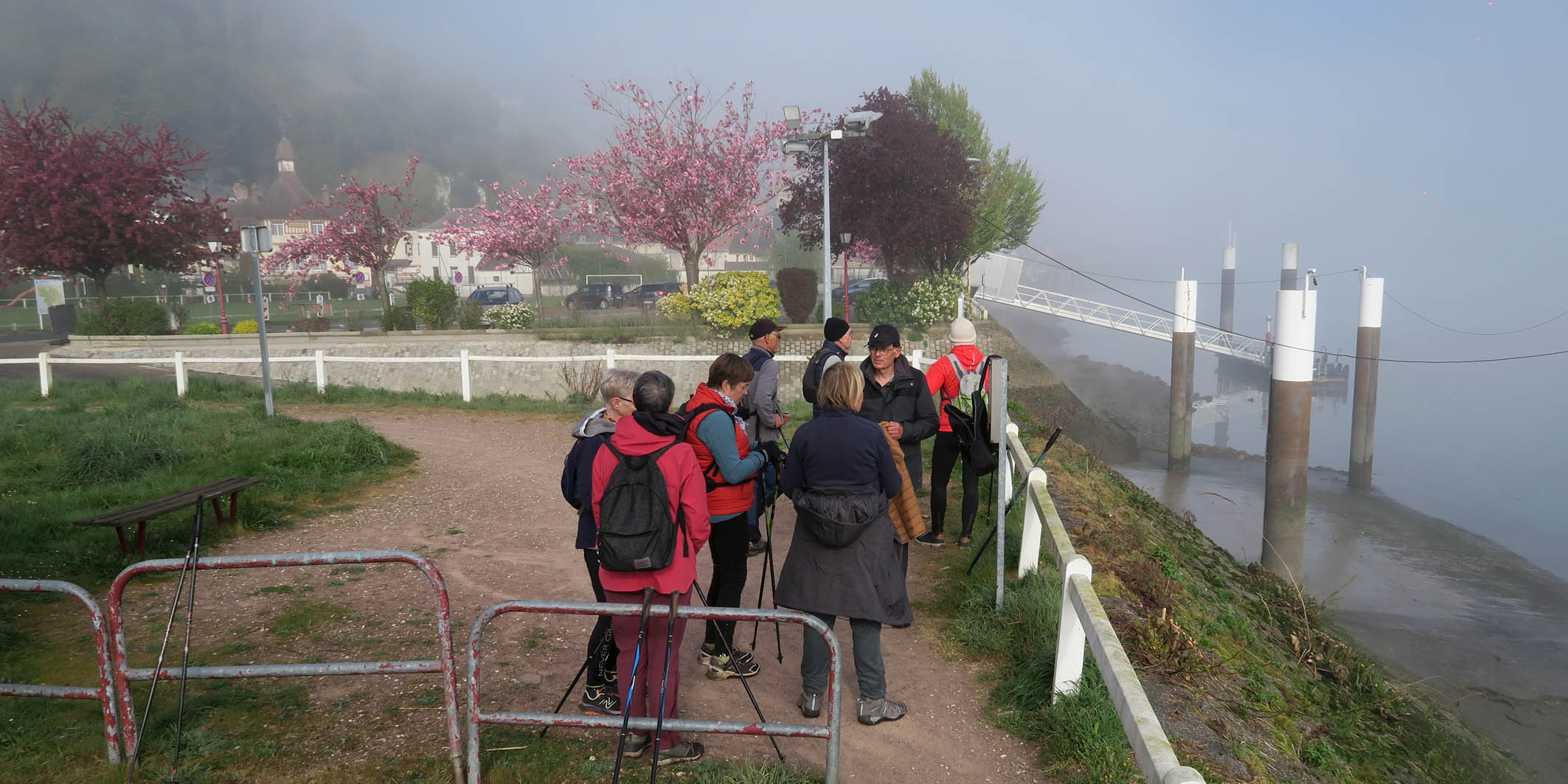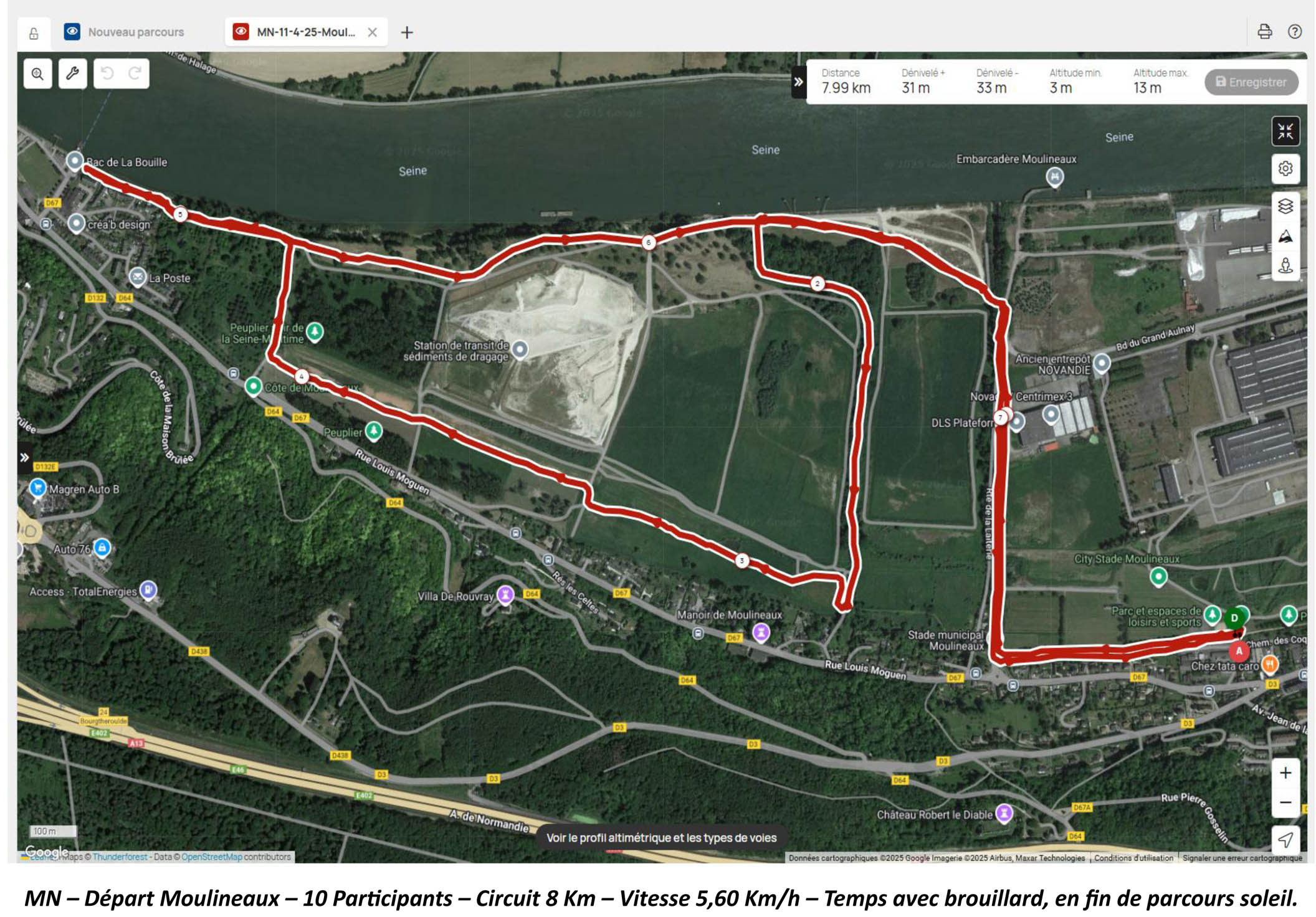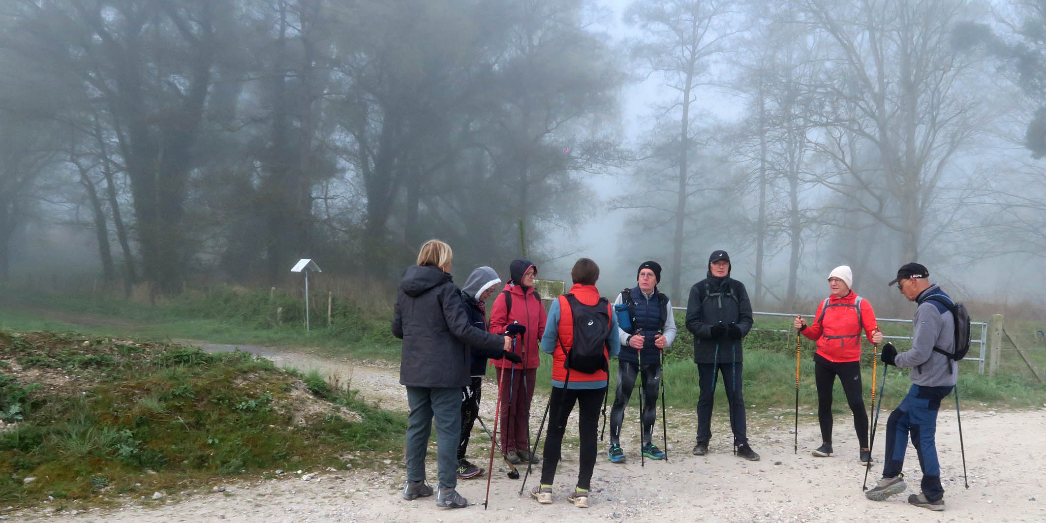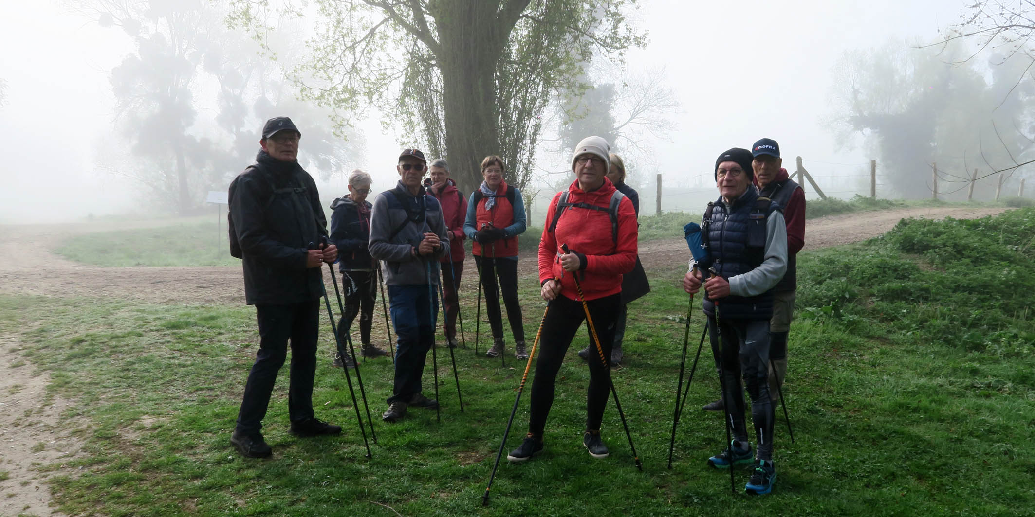 Marche Nordique –Vendredi 11Avril – pour un départ à 8h50, depuis le parking de la Mairie de Moulineaux. Nos Animateurs – 10 Participants – Circuit de 8 km – vitesse 5,60 Km/h – Temp brouillard et soleil en fin de parcours.