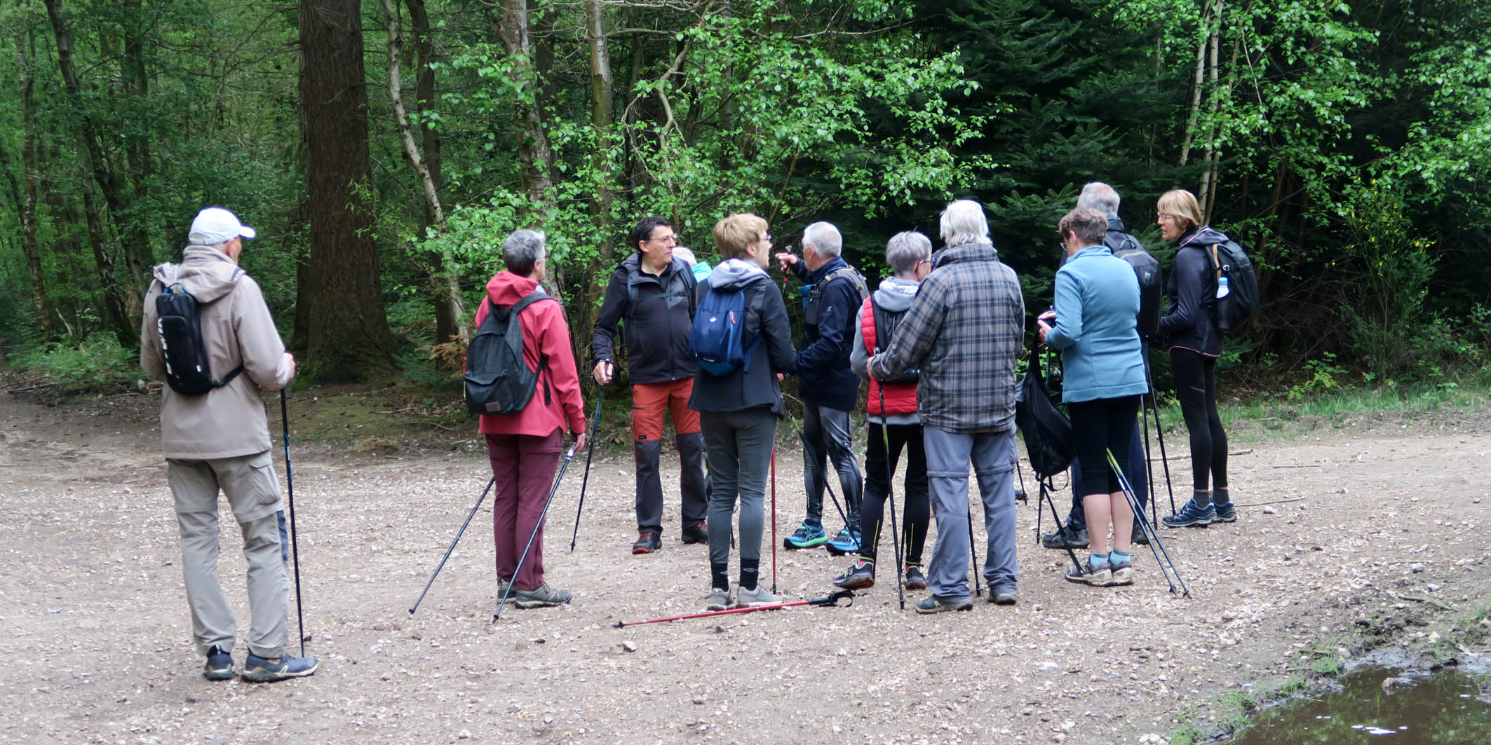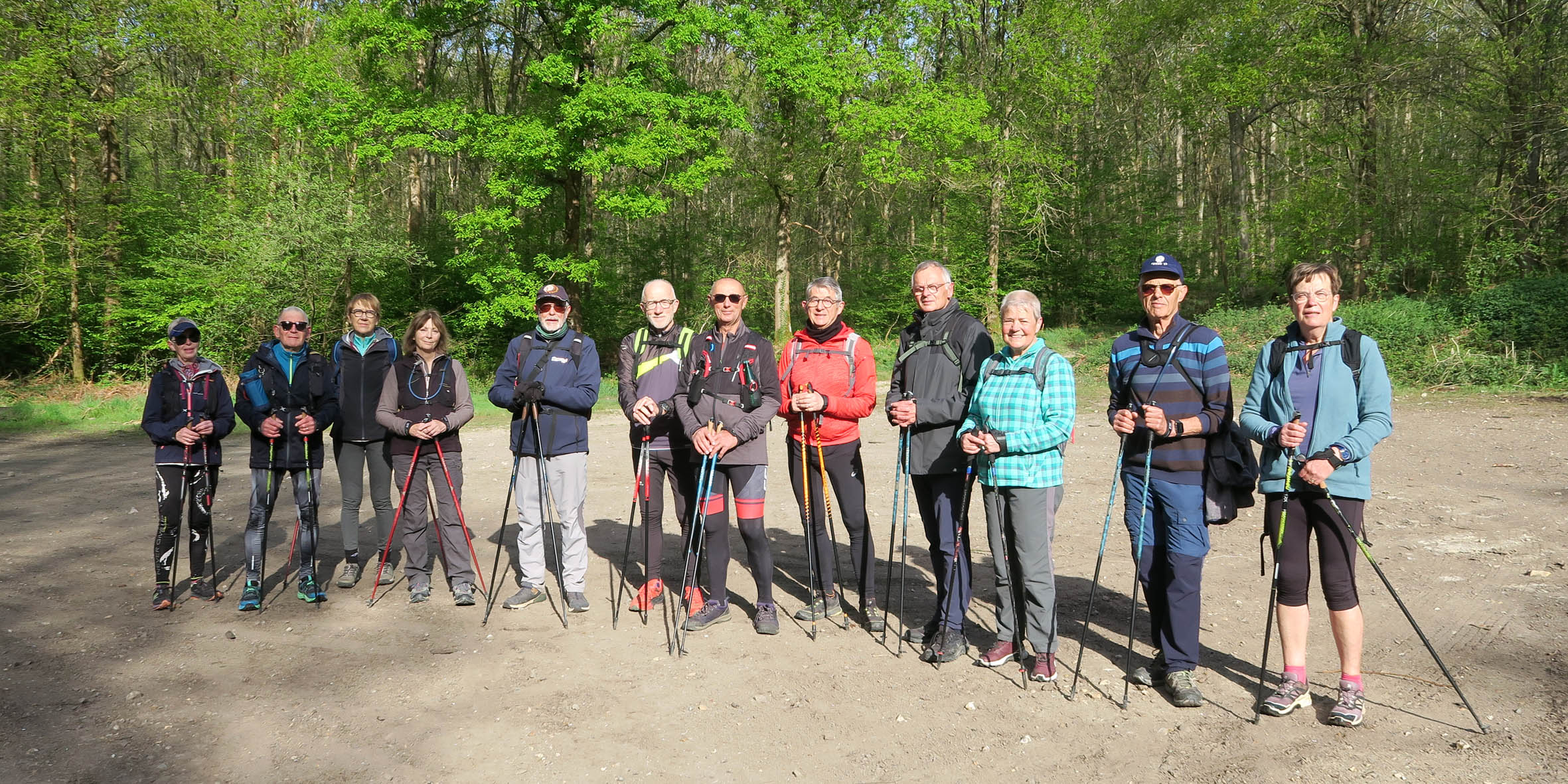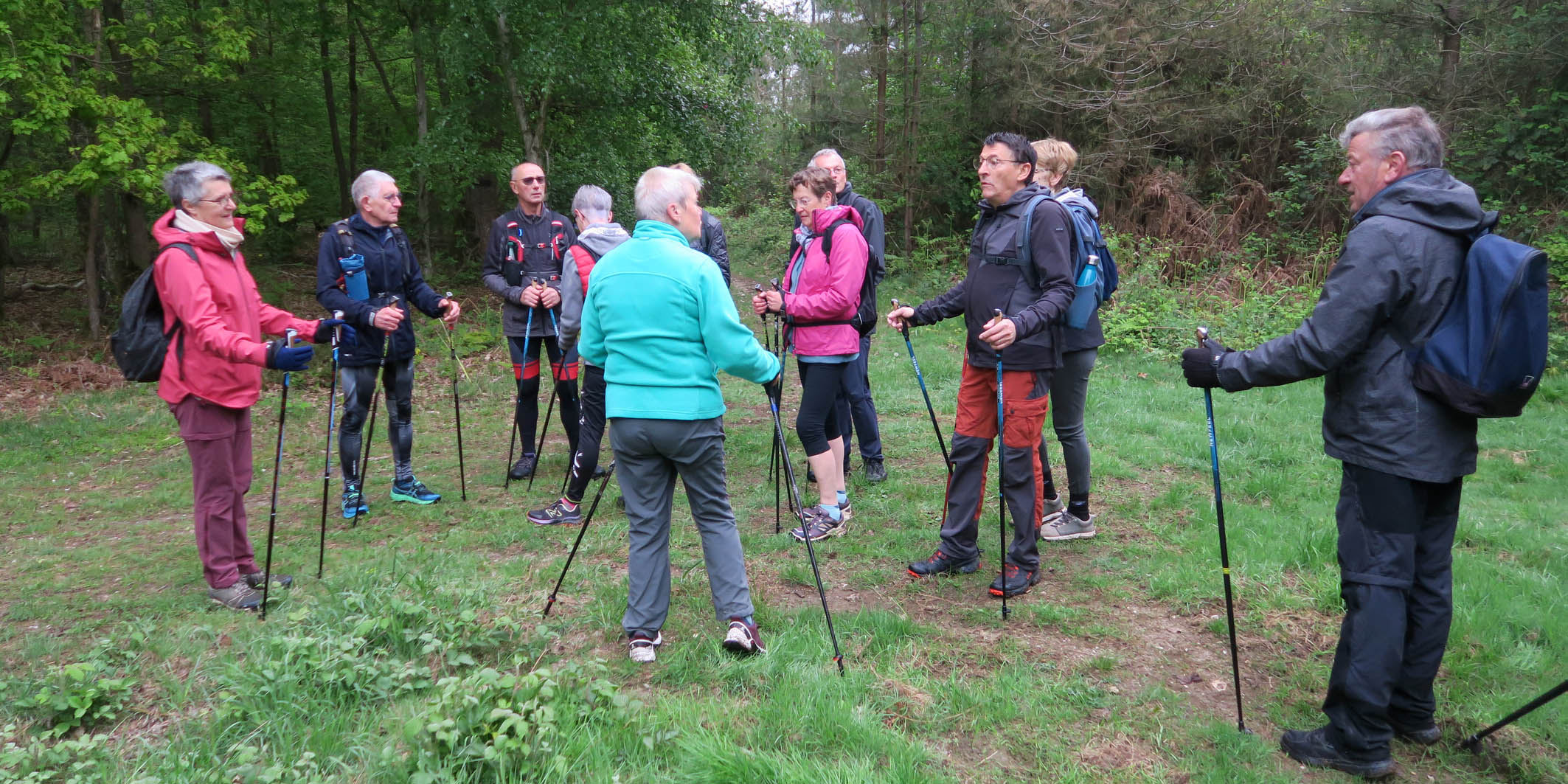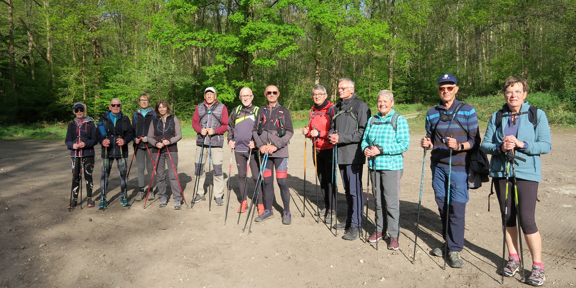 Marche Nordique –Vendredi 18 Avril – pour un départ à 8h50, depuis le parking Rue de la Hêtraie à Bosroumois Nos Animateurs. 13 Participants