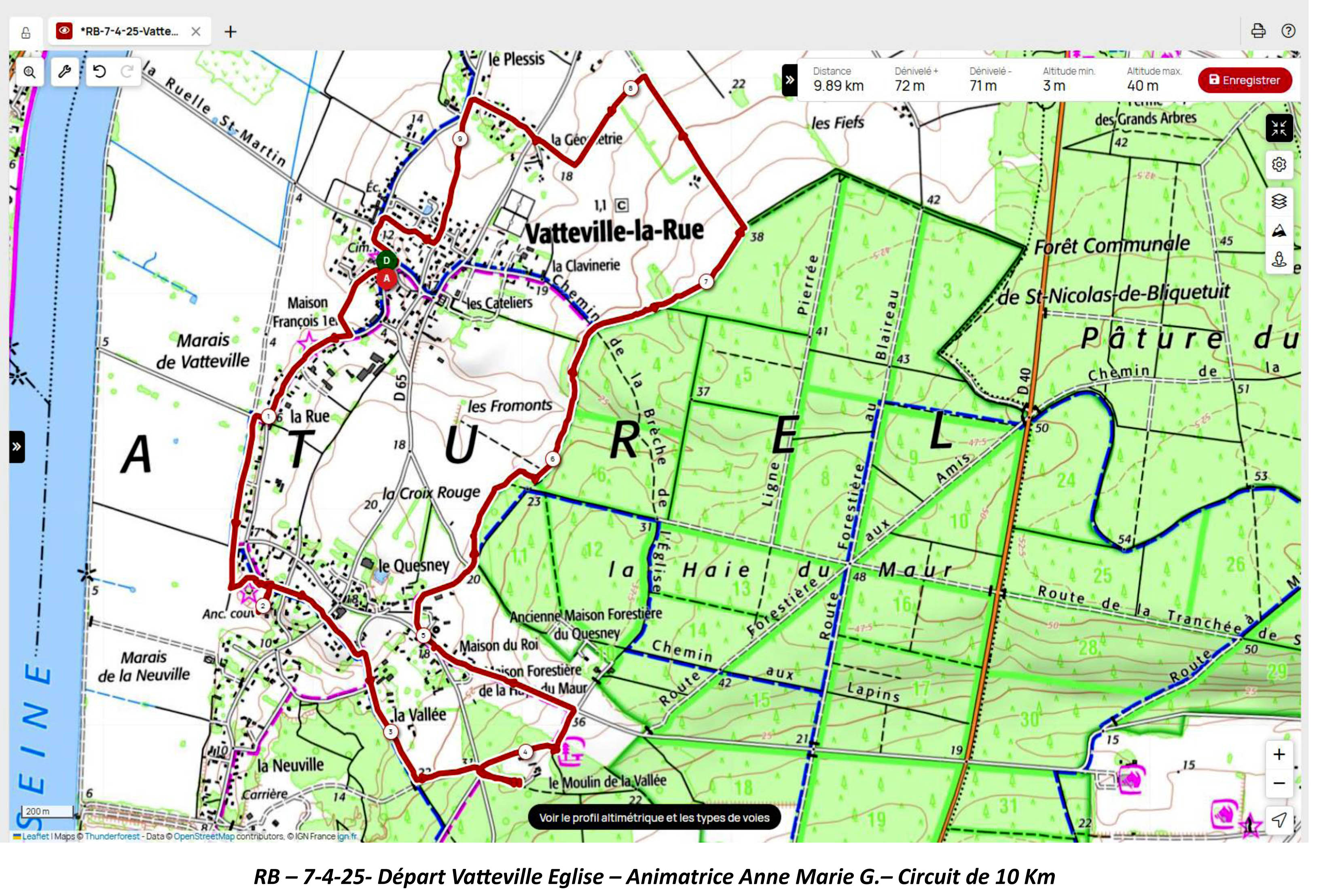 Lundi 7 Avril – Rando à la journée – Animatrice Anne Marie G., Rendez-vous à 9h30 au parking devant la Mairie (rue de l’Eglise) à VATTEVILLE la RUE. 13 Particiapants