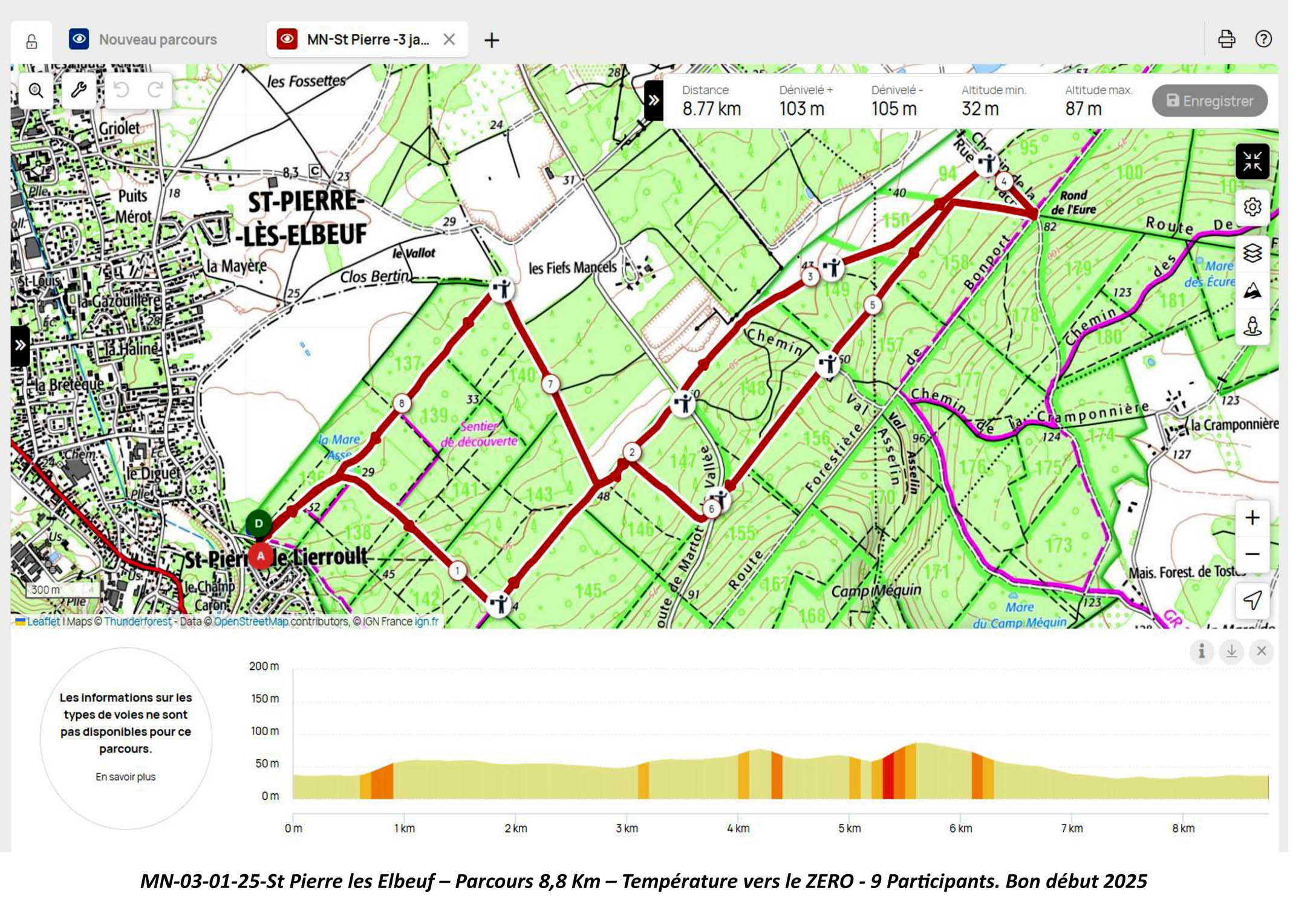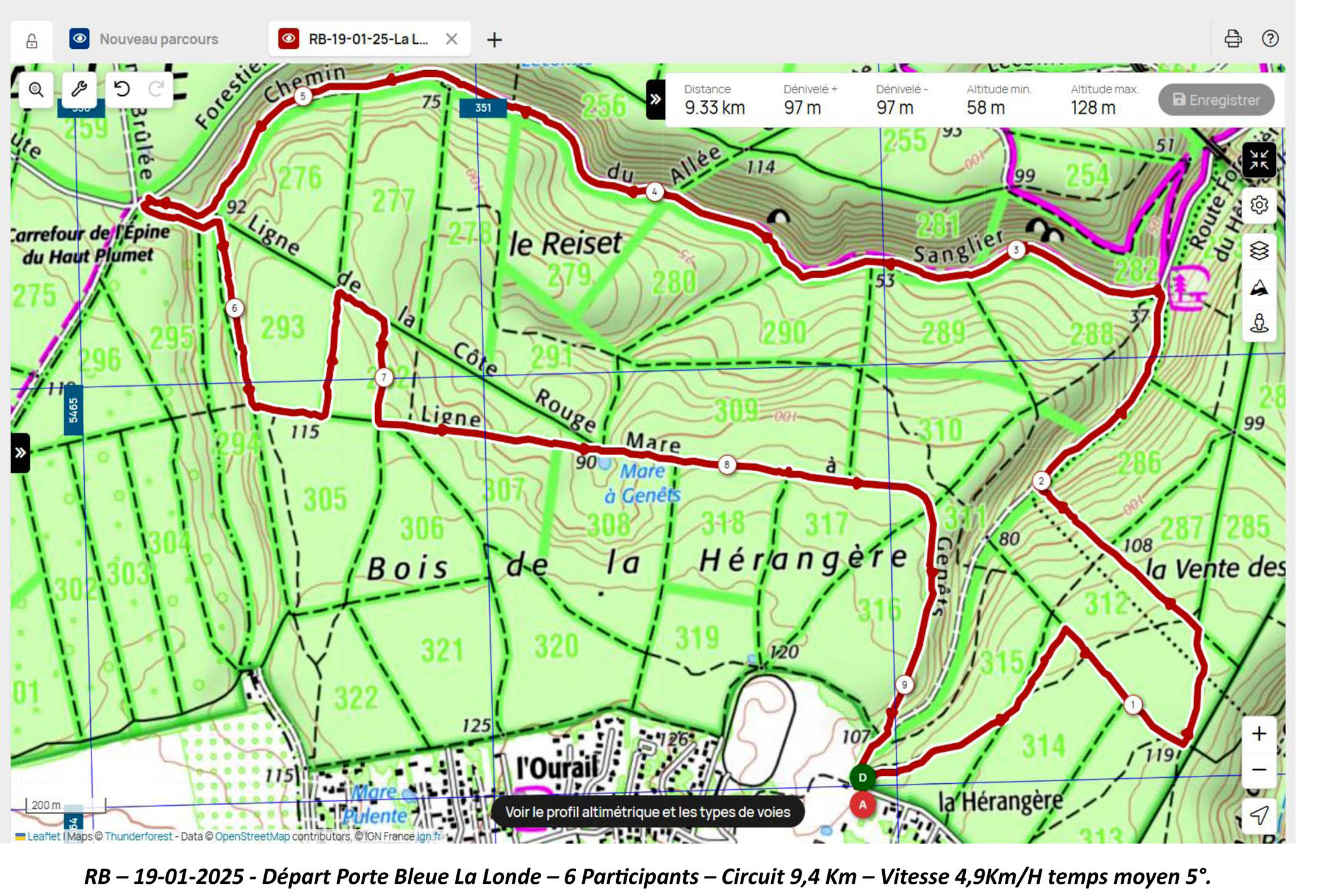Dimanche 19 Janvier 25 – AnimateurPatrick D. pour un départ à 9 heures depuis le parking > Rue de l’Ourée > Porte Bleue – La Londe. 6 Participants – Circuit 9,4 Km – Vitesse de déplacement 4,9 Km/h – temps moyen 5°.
