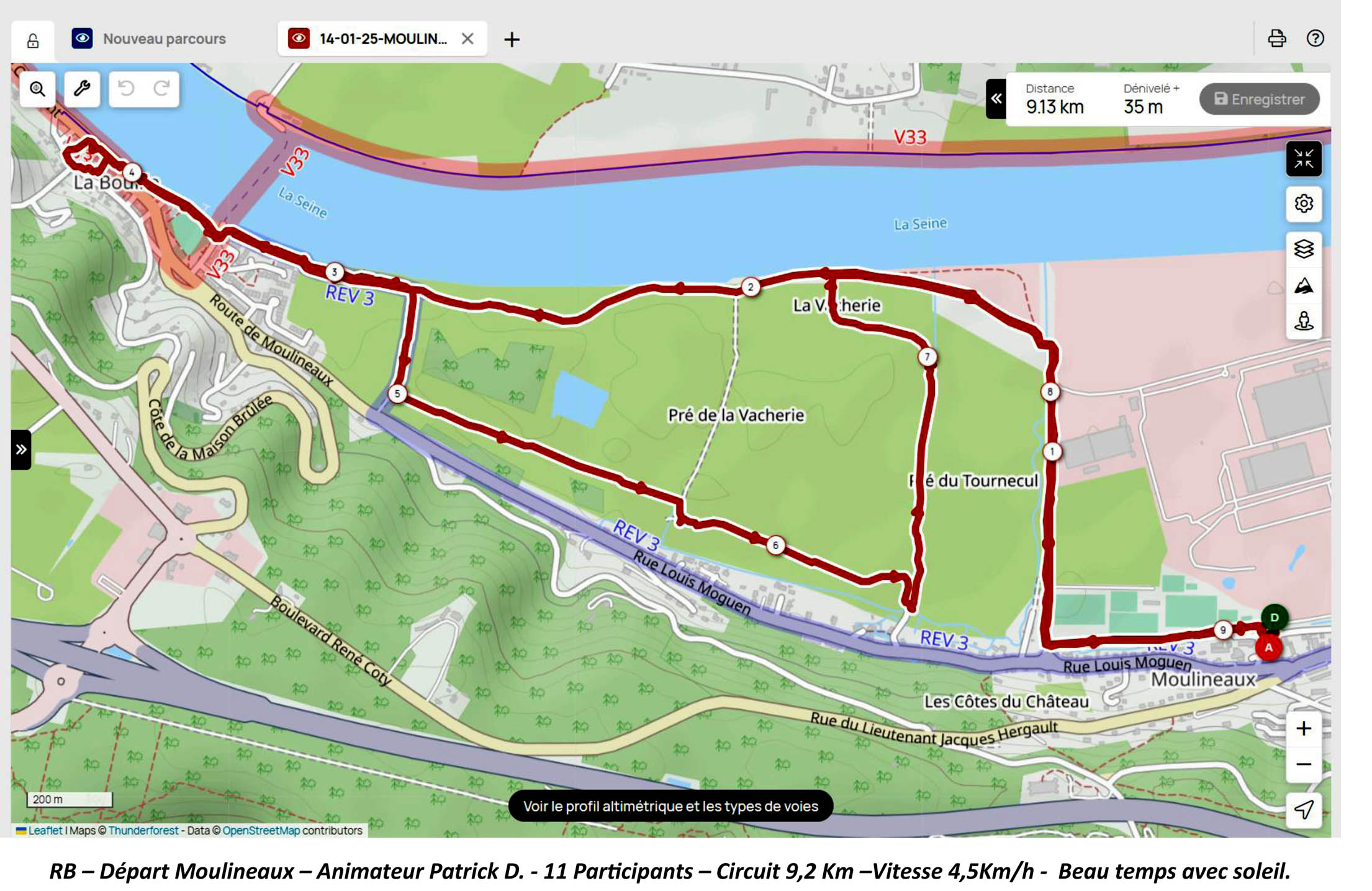 Mardi 14 Janvier 25 – Animateur Patrick D., pour un départ à 14 heures depuis le parking de la Mairie de Moulineaux. Circuit A/R de 9,2 Km. 11 Participants – Vitesse de déplacement 4,5 Km/h – avec du soleil.