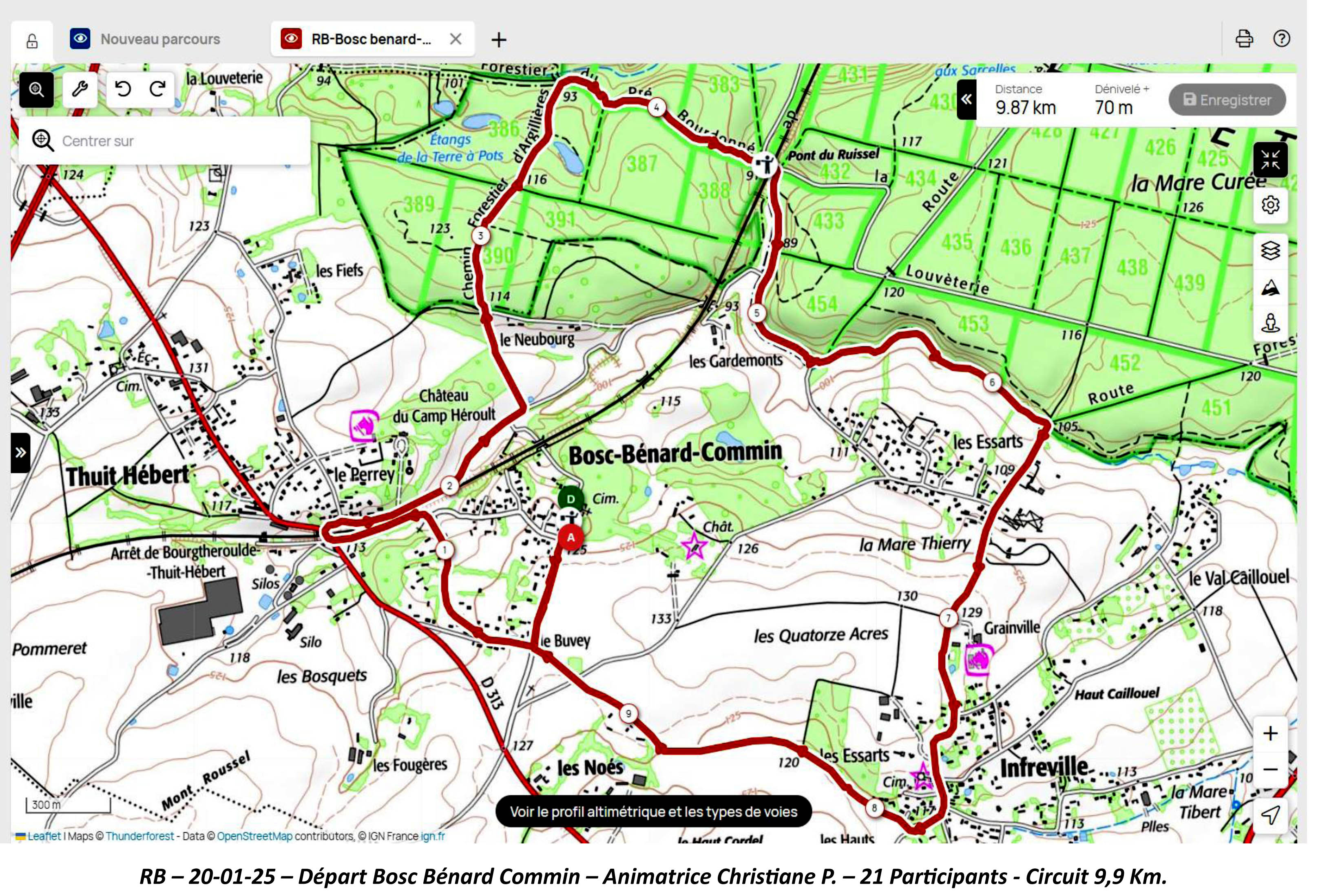 Lundi 20 Janvier 25, Animatrice Christiane P., pour un départ à 14 heures depuis le parking > de l’Eglise de Bosc Benard Commin. Parcours de 10 Km. 21 Participants – Temps moyen.