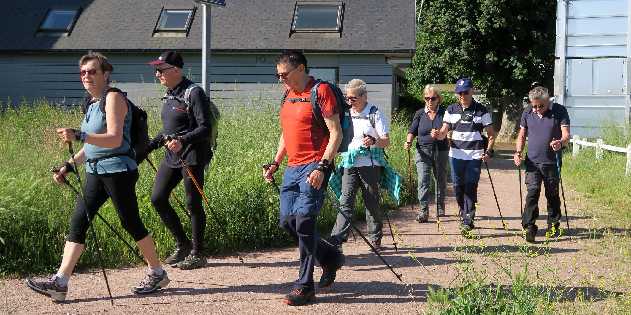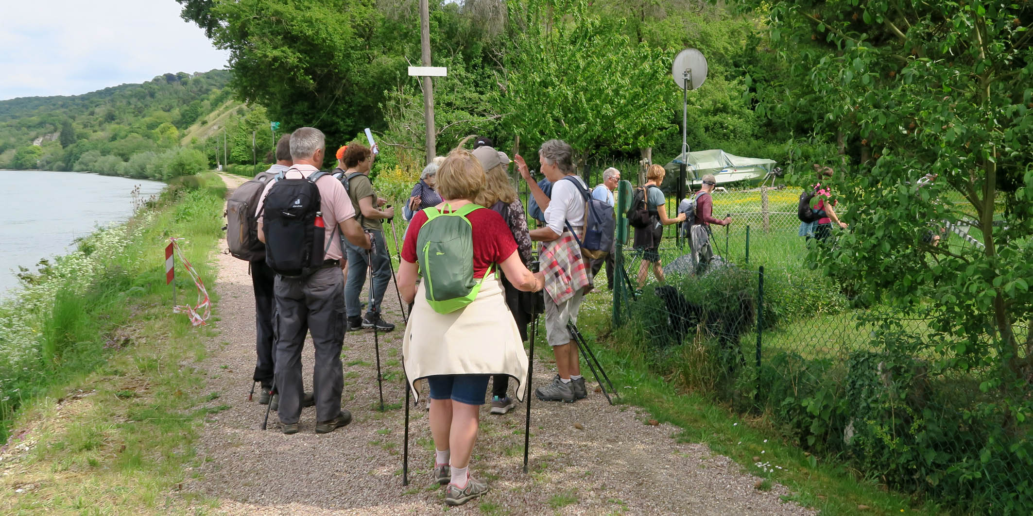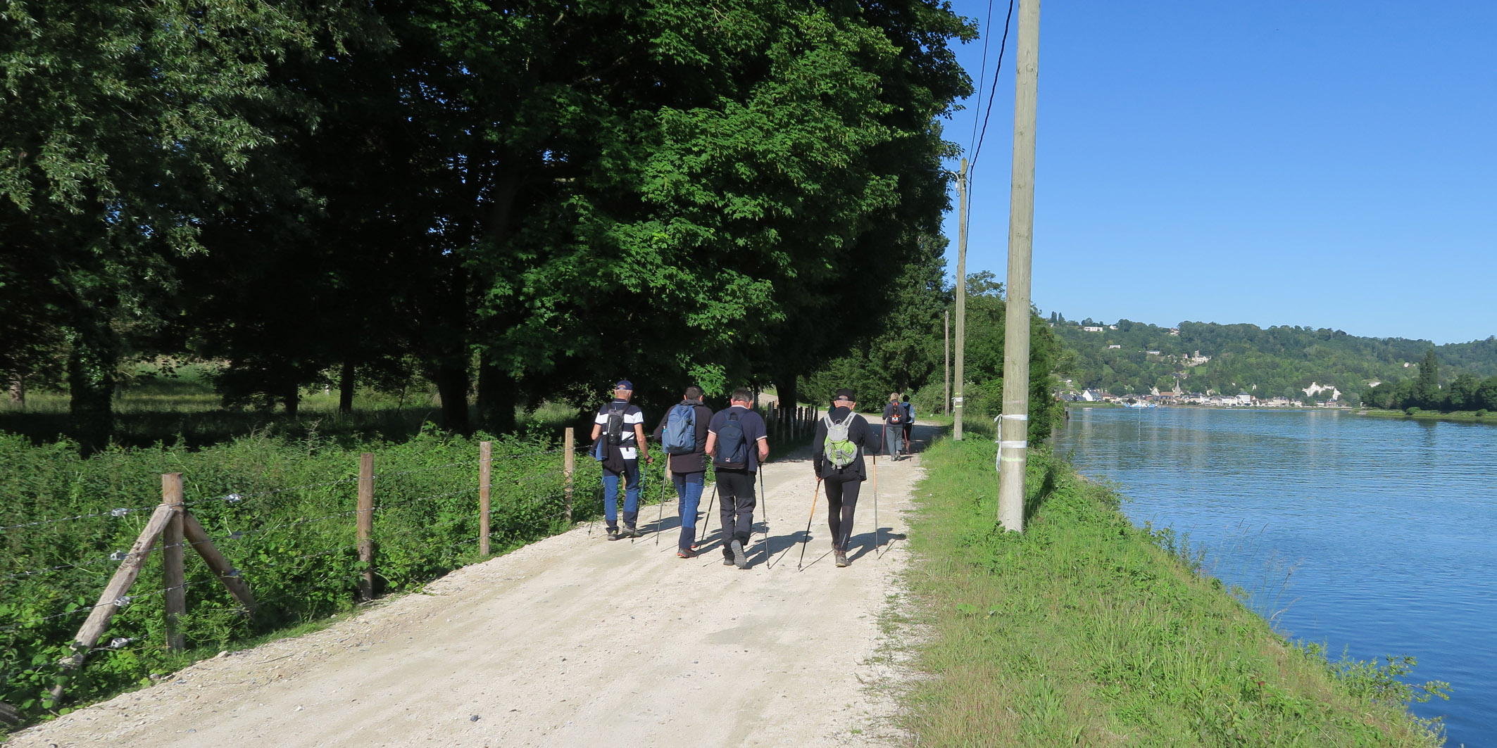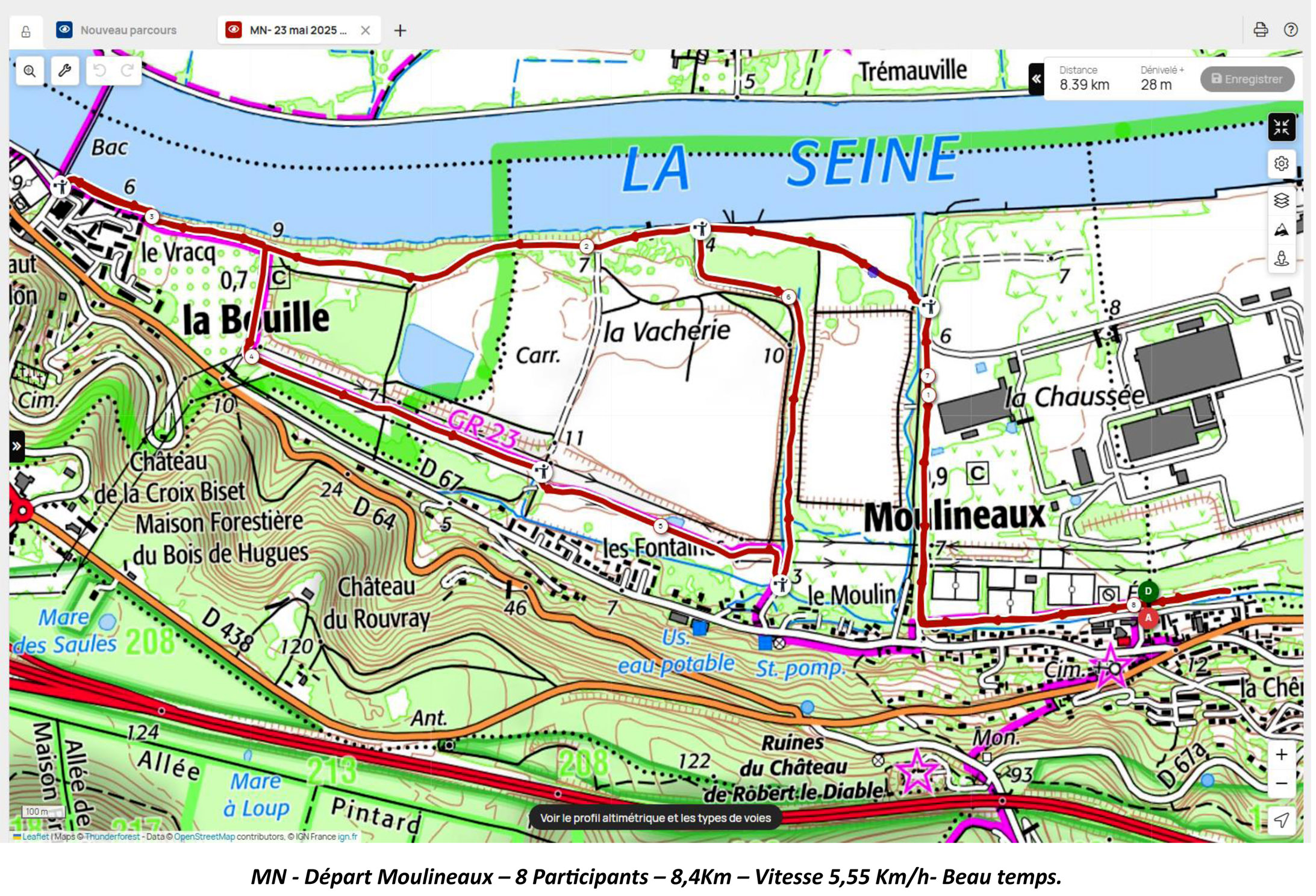 Marche Nordique –Vendredi 23 mai – pour un départ à 8h50, depuis le parking de la Mairie de Moulineaux. Nos Animateurs – 8 Participants – Circuit de 8,4 Km – Vitesse 5,55Km/h – Beau temps.