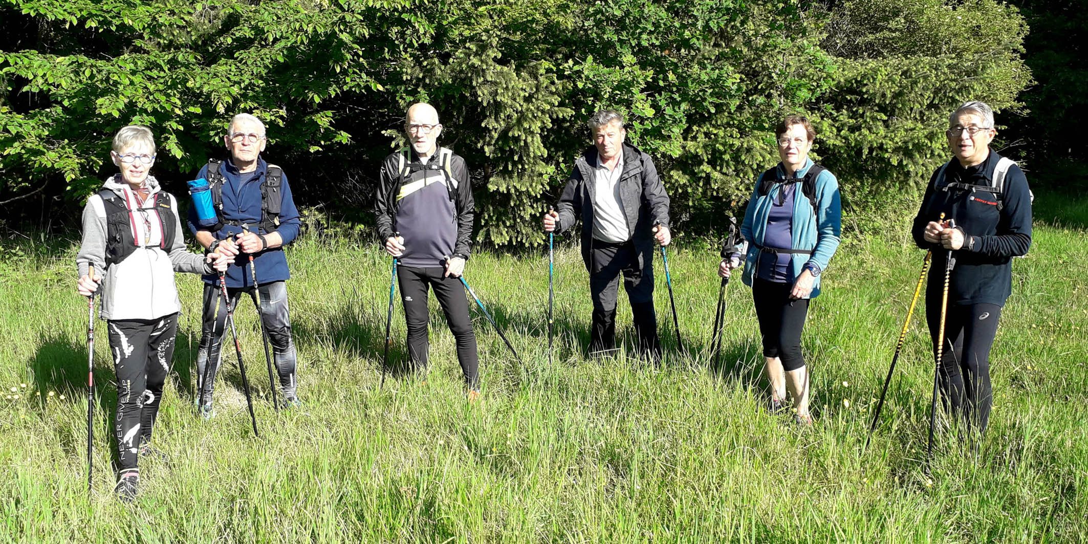 Marche Nordique –Vendredi 16 Mai – pour un départ à 8h50, depuis le parking des 17 tournants – Orival. Nos Animateurs. 13 Participants -Circuit 9,5 Km – Vitesse 5,5Km/h – Beau temps-