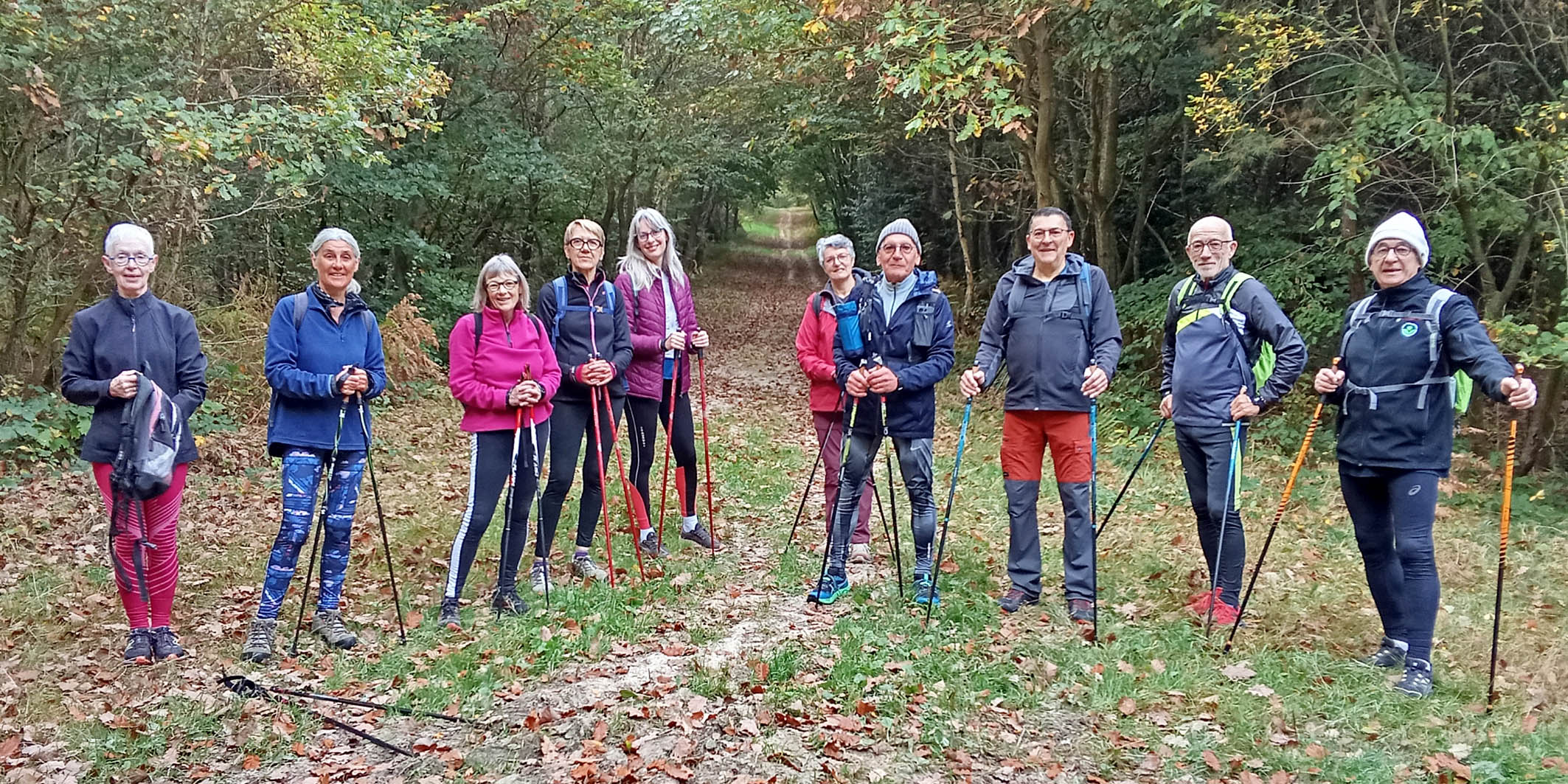 Marche Nordique –Vendredi 24 Octobre pour un départ à 8h50, depuis le parking > centre Coiffier > Champs du Bois > Les Essarts. Nos Animateurs. 11 Participants – Parcours 9,5 Km.