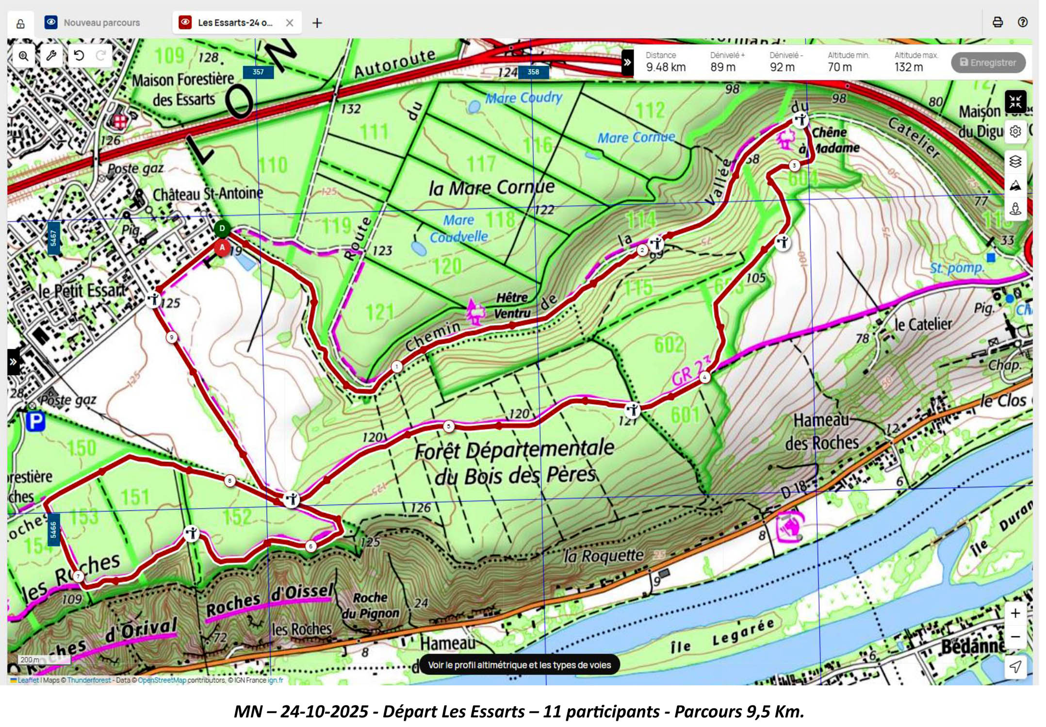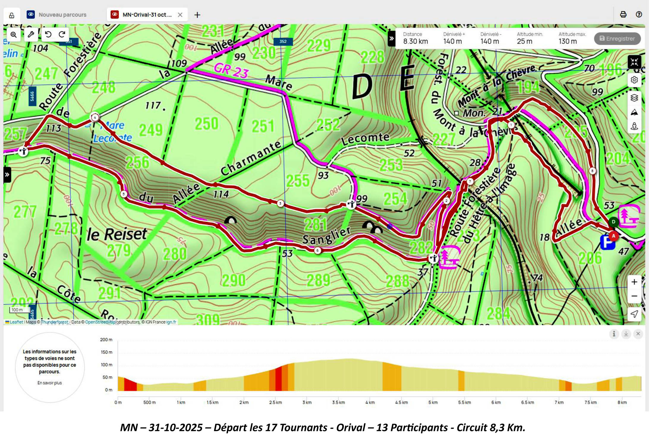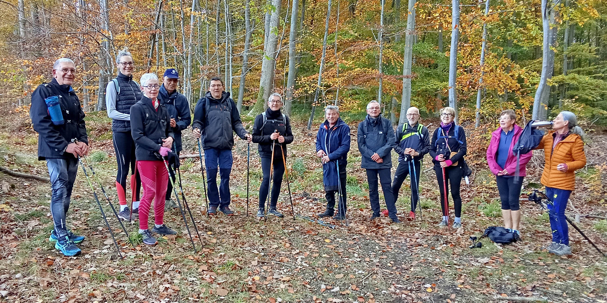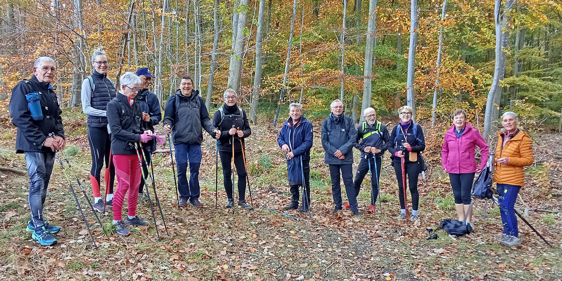Marche Nordique –Vendredi 31 Octobre pour un départ à 8h50, depuis le parking > Les 17 Tournants > Orival. Nos Animateurs. 13 Participants- Circuit 8,3 Km.