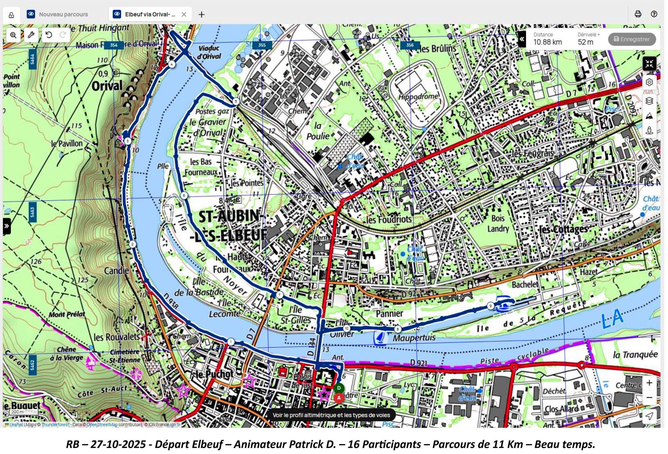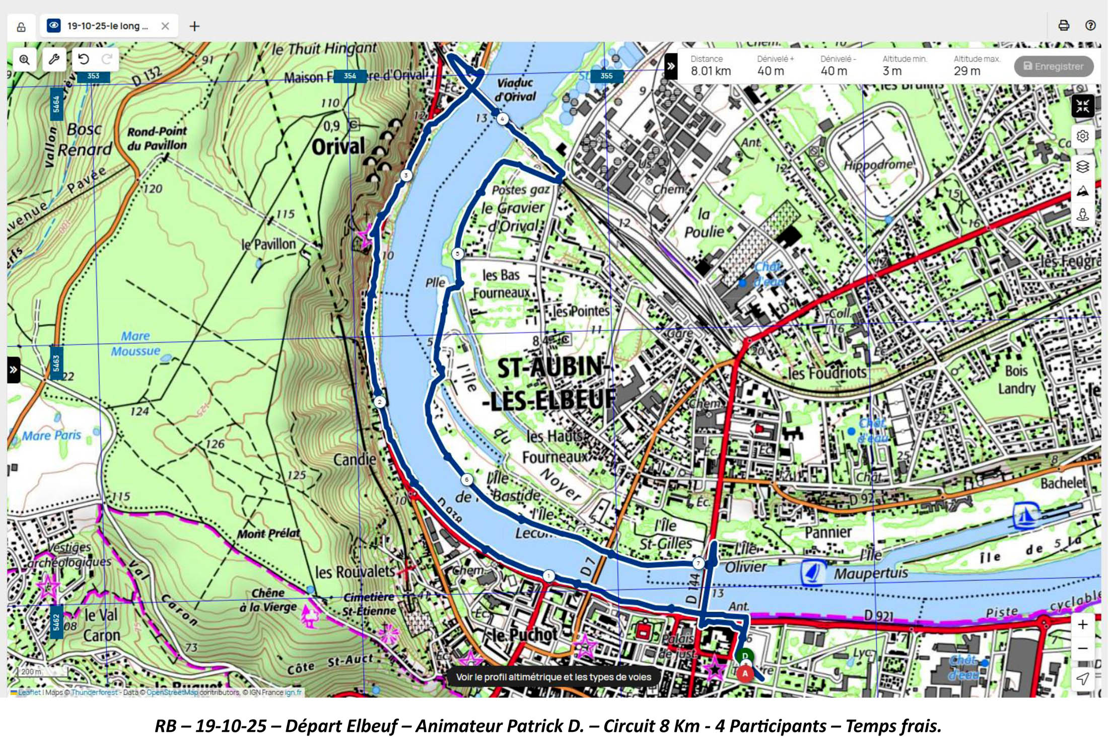 Dimanche 19 Octobre, Animateur Patrick D., départ à 9 heures, depuis le parking du Champ de Foire à Elbeuf. 4 Participants -Circuit de 8 Km – Temps frais.