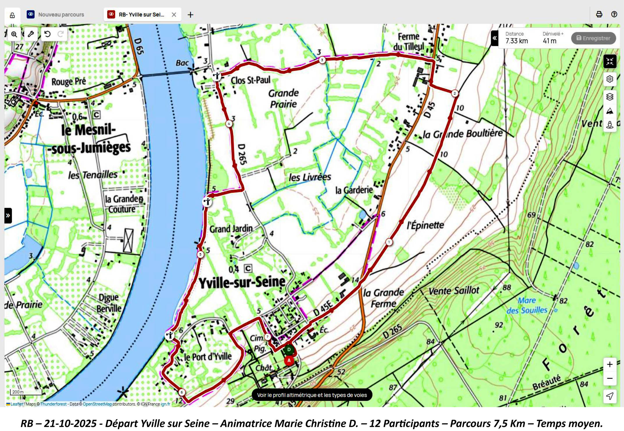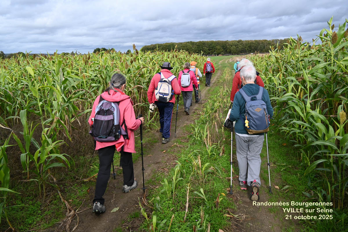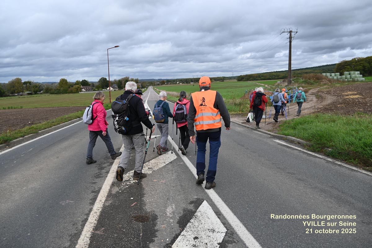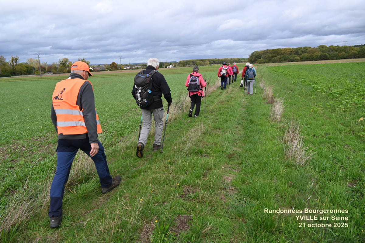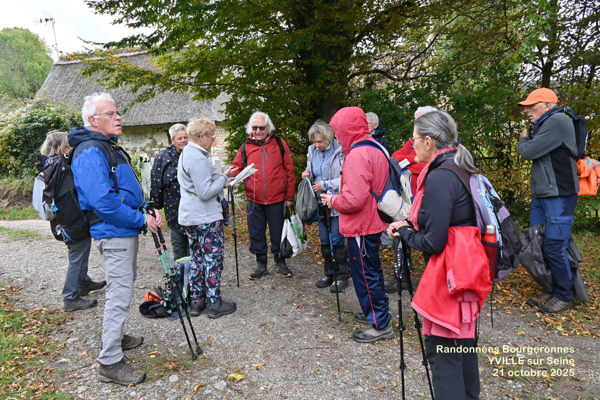 Mardi 21 Octobre, Animatrice Marie Christine D., pour un départ à 14 H depuis le parking au château d’Iville sur Seine> parcours de 7,5 km entre plaines et bord de seine à Yville sur Seine. 12 Participants – Temp moyen.