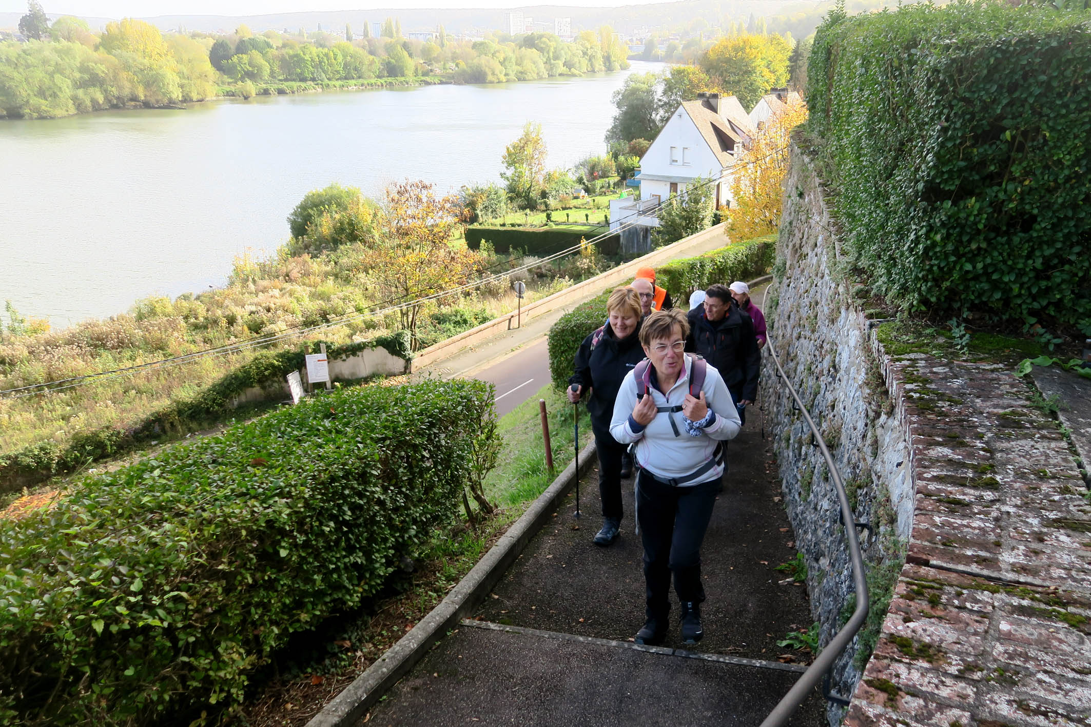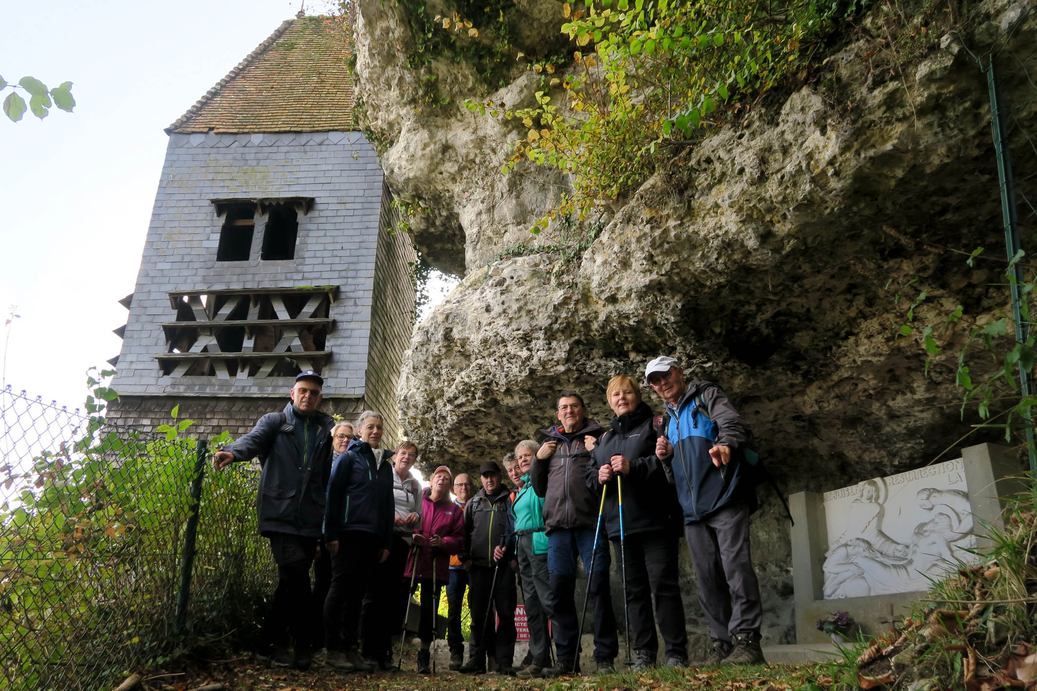 Lundi 27 Octobre, Animateur Patrick D., pour un départ à 14 heures depuis le parking du Champ de Foire à Elbeuf. 16 Participants – Parcours de 11Km – Beau temps. Info sur l’église Saint Georges d’Orival > église semi-troglodyte base du XII siècle et remaniée au XVI siècle. Sa fondation remonte au XIIe siècle à l’époque des ducs de Normandie, mais la majorité des murs actuels témoigne d’un remaniement au XVIe siècle. En 1788, on décide d’agrandir l’église. Ne pouvant le faire vers l’est, on creuse dans la falaise sur une surface de 250 m2. Observez le clocher pittoresque, il est indépendant du reste de l’église car construit sur un rocher au-dessus de l’édifice. A l’intérieur, l’église Saint-Georges conserve un intéressant patrimoine mobilier dont une chaire datée de 1728, une piéta polychrome de la fin du XVe siècle et un lutrin en forme d’aigle du XVIIe siècle. L‘édifice est inscrit au titre des monuments historiques depuis 1927. Un chemin de croix part de l’église Saint-Georges et amène à un magnifique panorama sur la vallée de Seine. Sur le chemin, on croise également d’anciennes habitations semi-troglodytes, dont le hameau de la Roche Foulon.