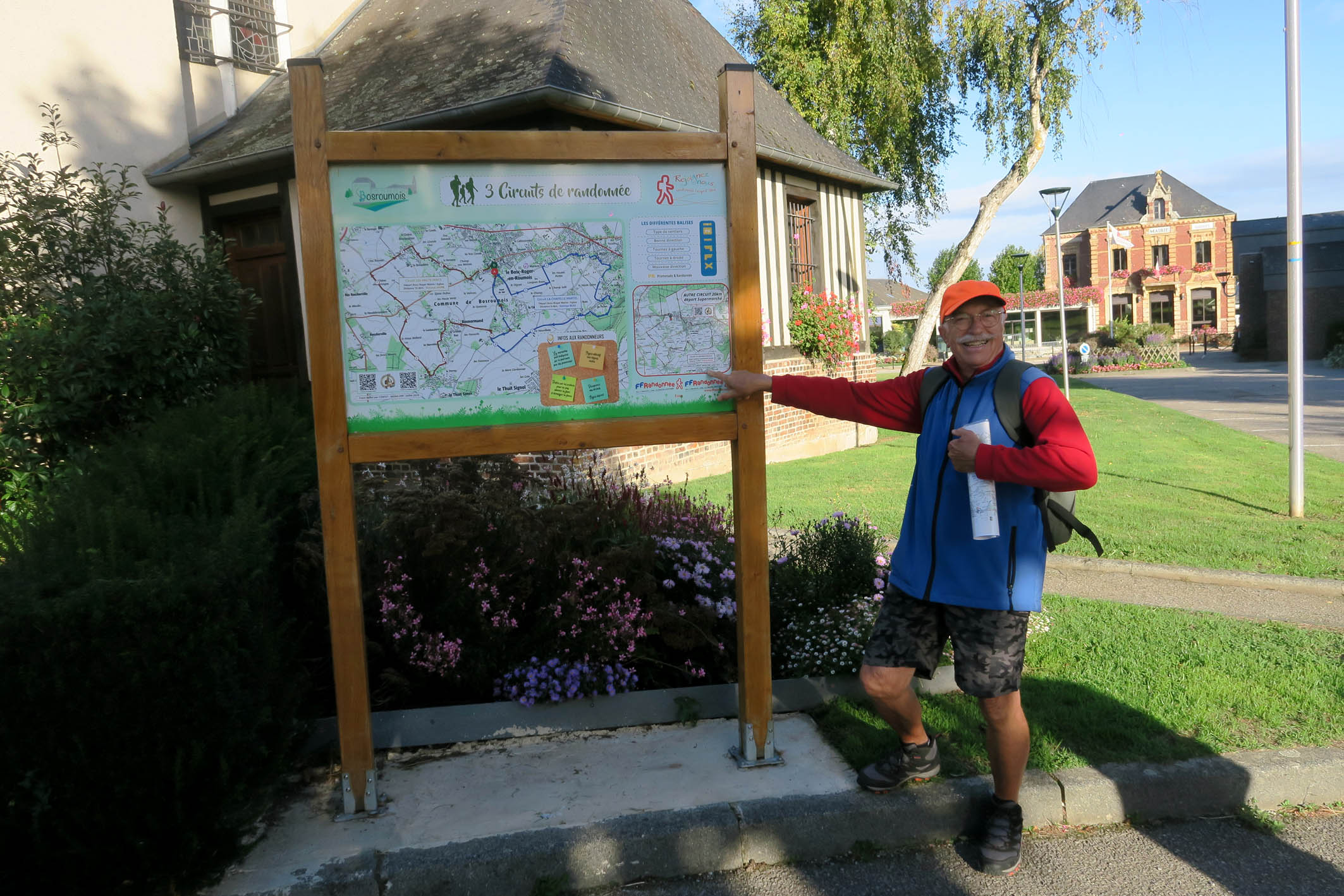 Mardi 2 Septembre, Animatrice Marie Christine D., pour un départ à 14 heures depuis le parking > A l’entrée du village parcs de jeux, Commune d’ HAUVILLE – Parcours de 8km environ en plaines et forêt – 8 Participants.
