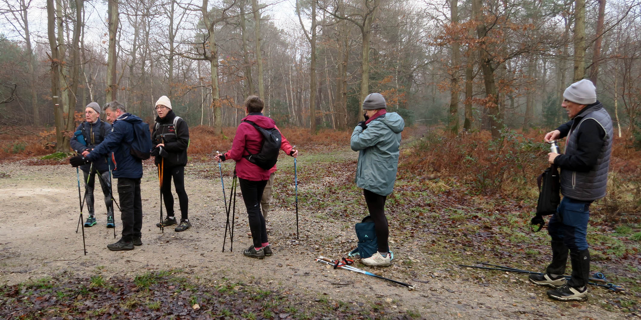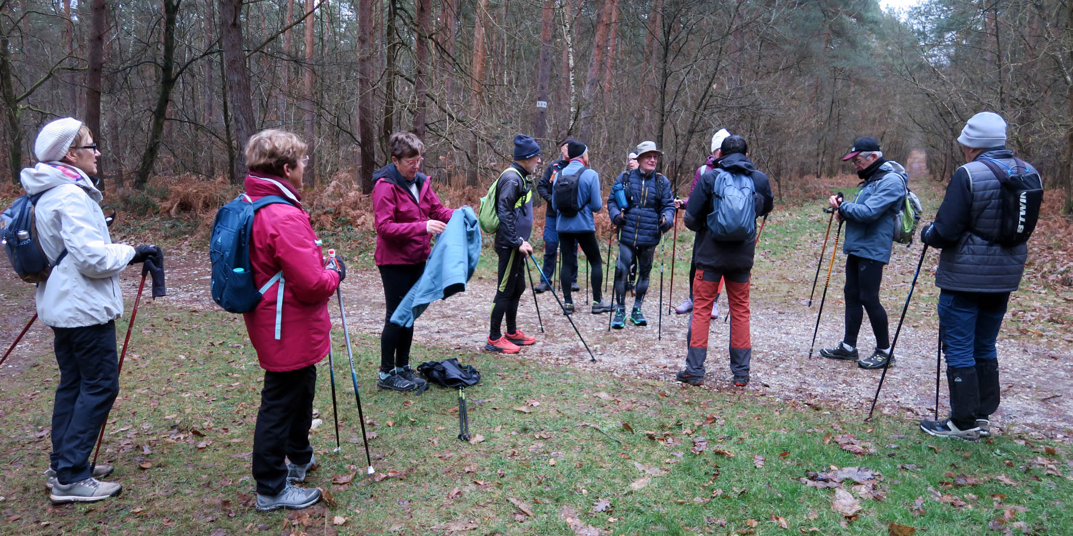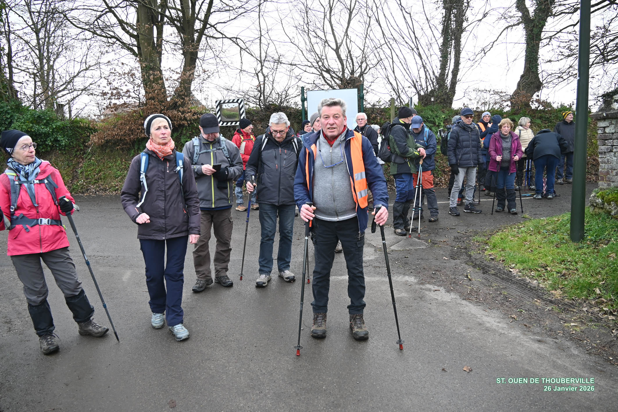 Marche Nordique –Vendredi 16 Janvier 2026 pour un départ à 8h50, depuis le parking >La Hérangère > La Londe. Nos Animateurs. 15 Participants – Circuit de 8,2 Km – Terrain boueux et glissant.