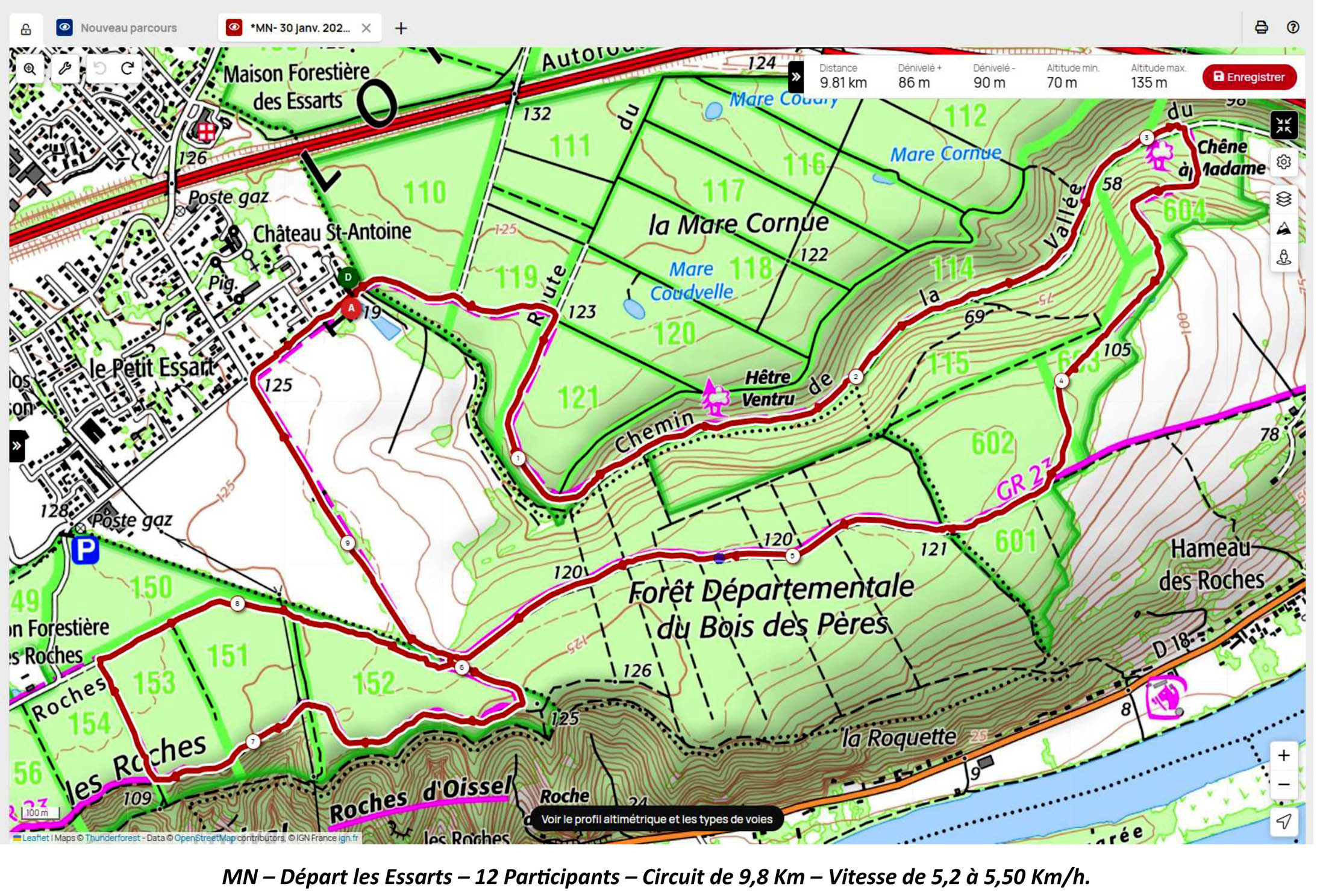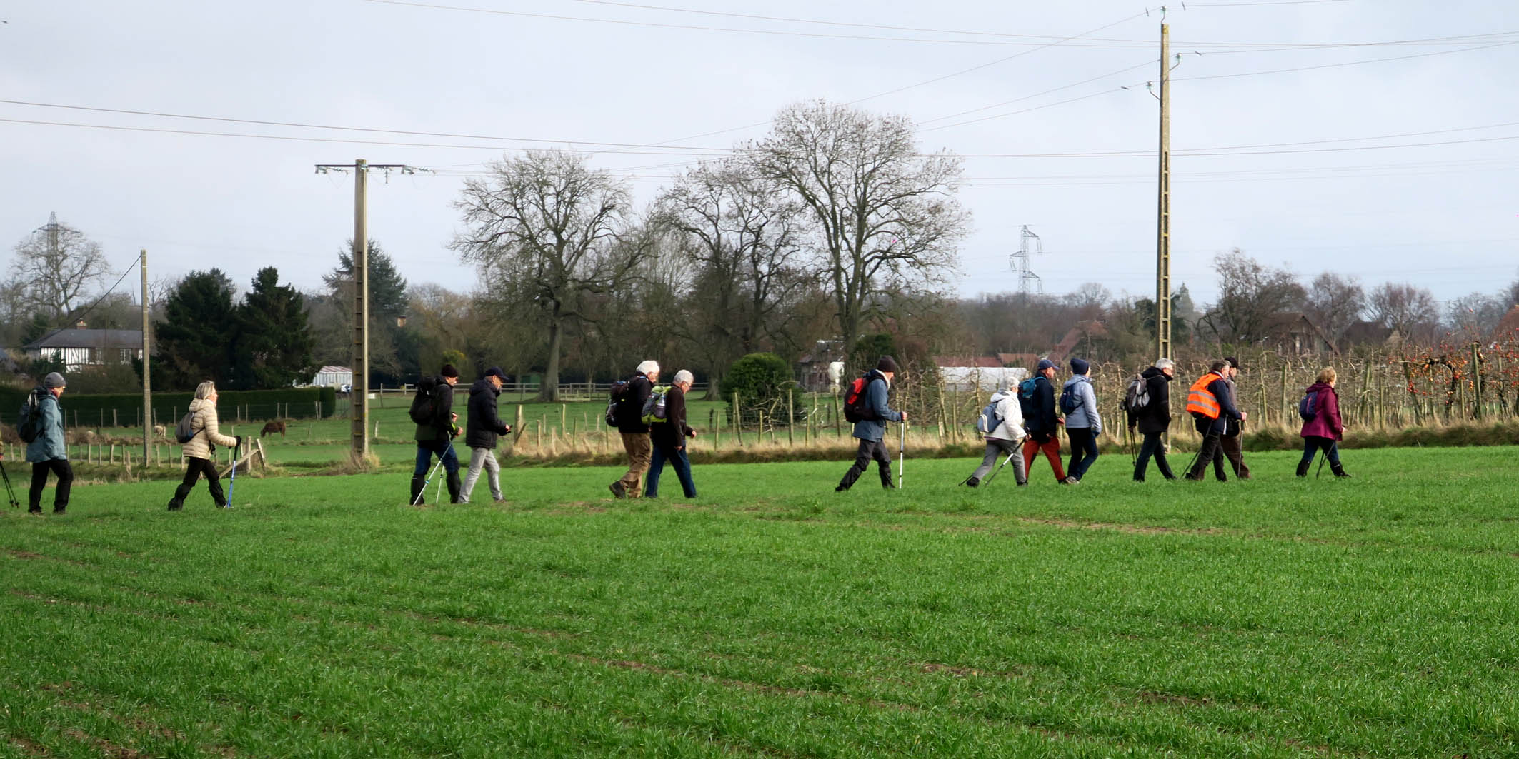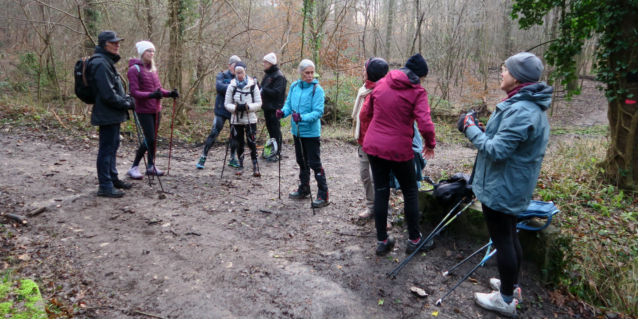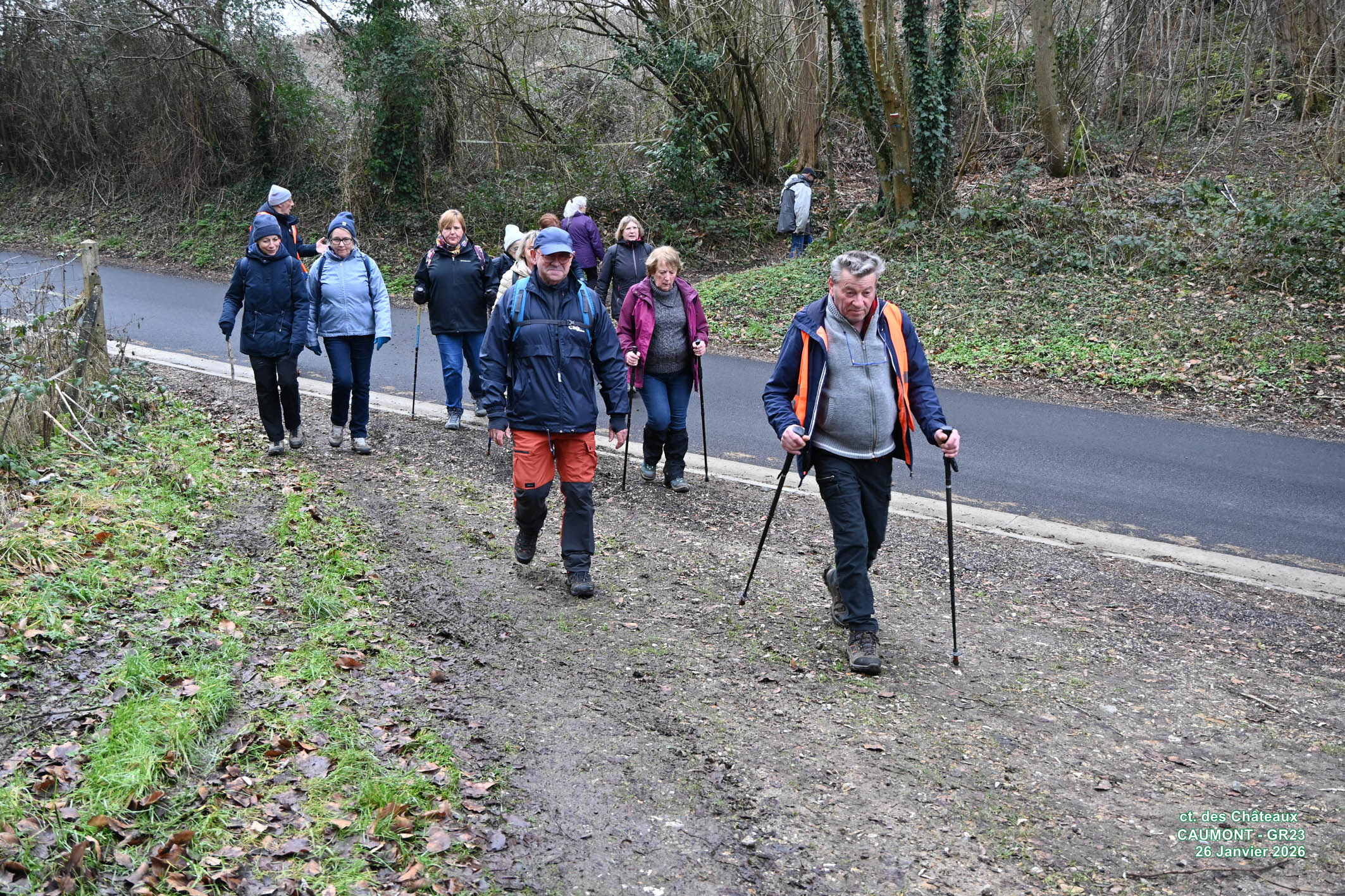 Marche Nordique –Vendredi 30 Janvier 2026 pour un départ à 8h50, depuis le parking > Champ du Bois > Les Essarts – Nos Animateurs. Circuit de 9,8 Km – 12 Participants – Terrain glissant et boueux.