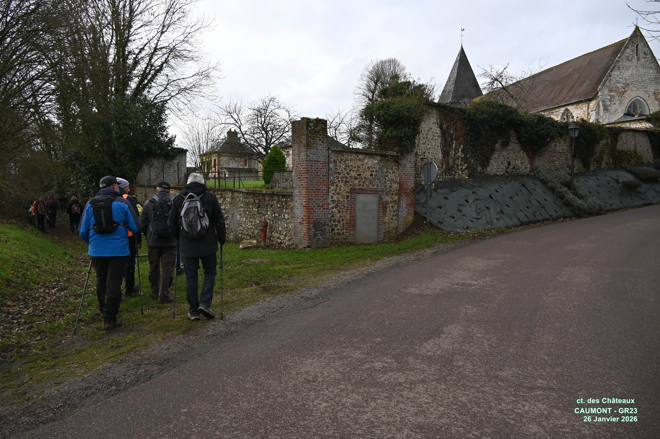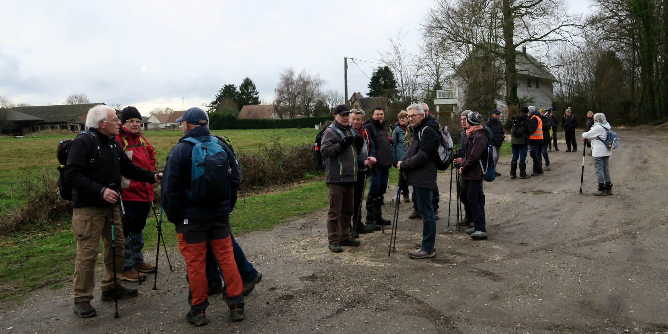 Lundi 19 Janvier, animateur Alain L., pour un départ à 14 H depuis le parking > centre du village – Berville en Roumois – Parcours de 12,2 km – 28 Participants – Beau temps.